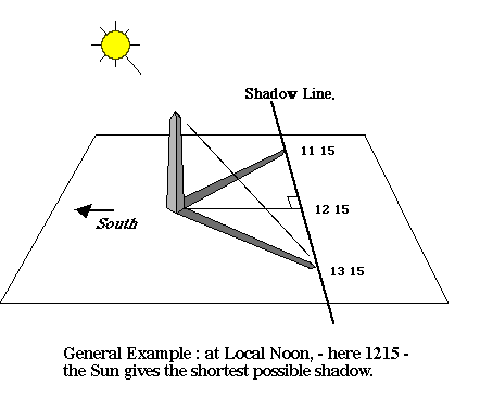 Here you simply draw a circle around your gnomon. The Local Noon can then be determined from the times when the end of the shadow crosses this circle, before and after noon. This idea dates back to ancient Egypt.
