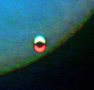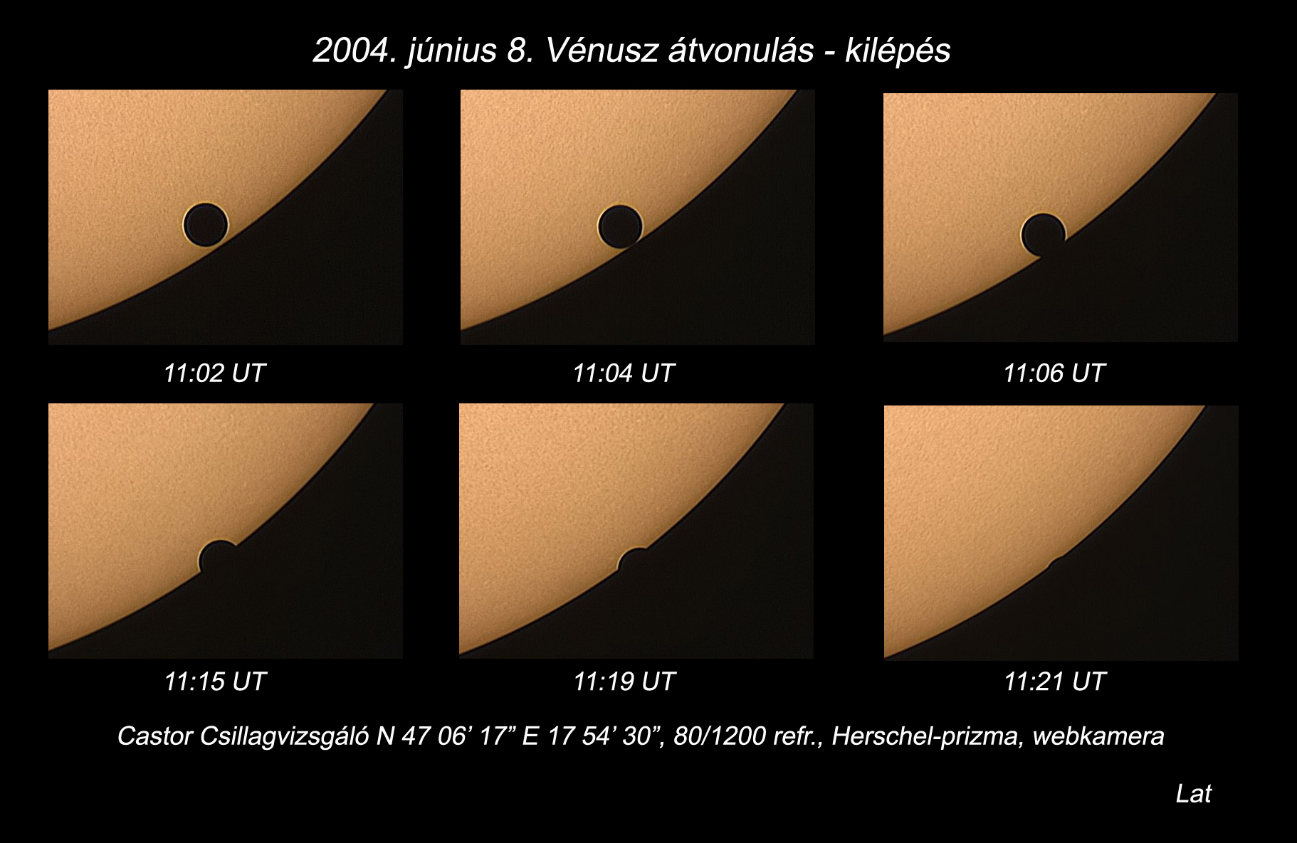 Castor Observatory 80/120mm refractor with Herschel-prism Webcamera June 8, 2004 Hungary | Venus at Third Contact [1768 x 1194 pix - 723k]
