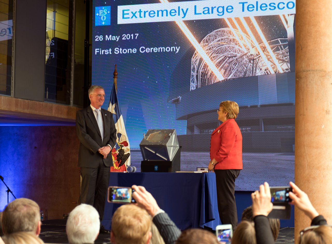 Dzisiaj odbyła się uroczystość z okazji wmurowania kamienia węgielnego dla Ekstremalnie Wielkiego Teleskopu (ELT). Wzięła w niej udział Prezydent Chile, Michelle Bachelet Jeria. Uroczystość odbyła się w Obserwatorium Paranal, należącym do ESO, w północnym Chile, blisko miejsca, w którym stanie przyszły gigantyczny teleskop. Ten ważny etap oznacza rozpoczęcie budowy kopuły i głównej struktury największego teleskopu optycznego świata i rozpoczęcia nowej ery w astronomii. Uroczystość dotyczyła także podłączenia obserwatorium do chilijskiej narodowej sieci elektroenergetycznej.