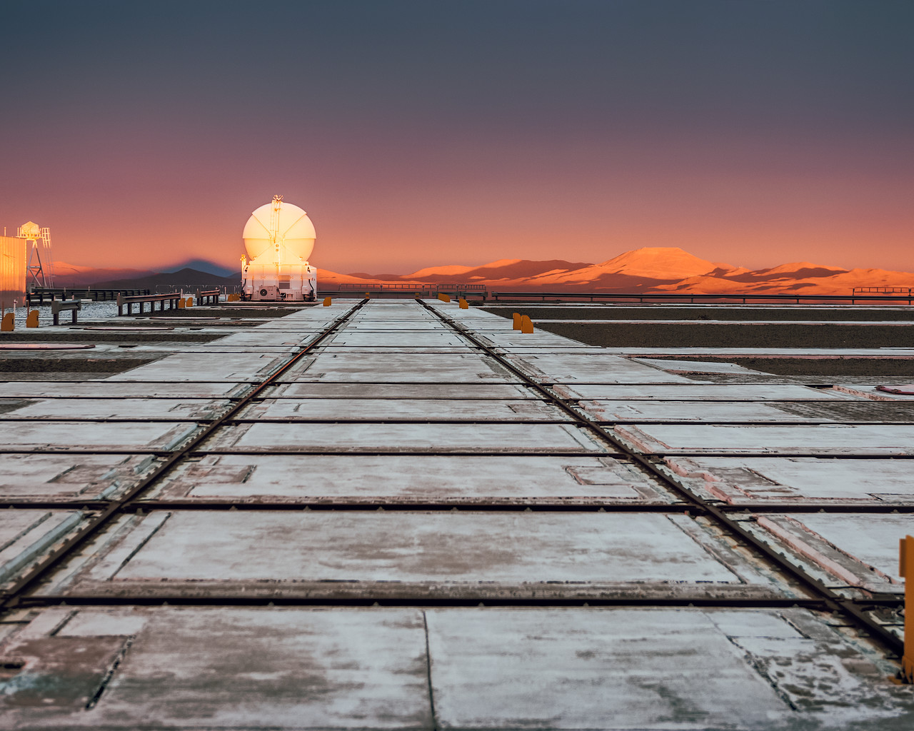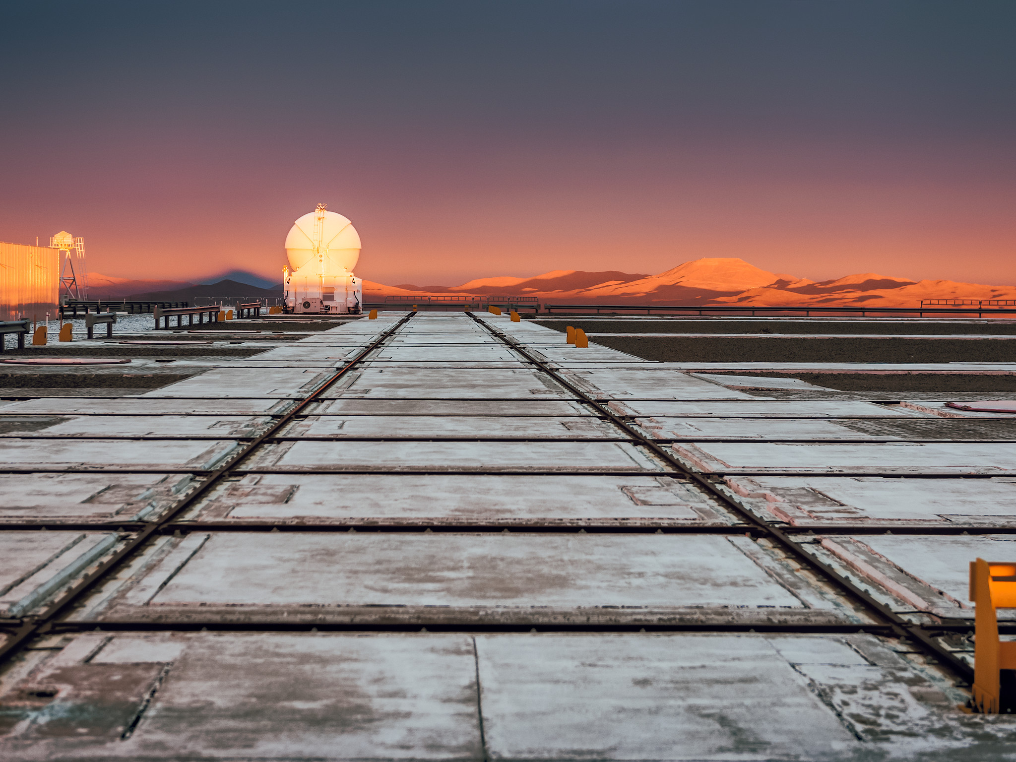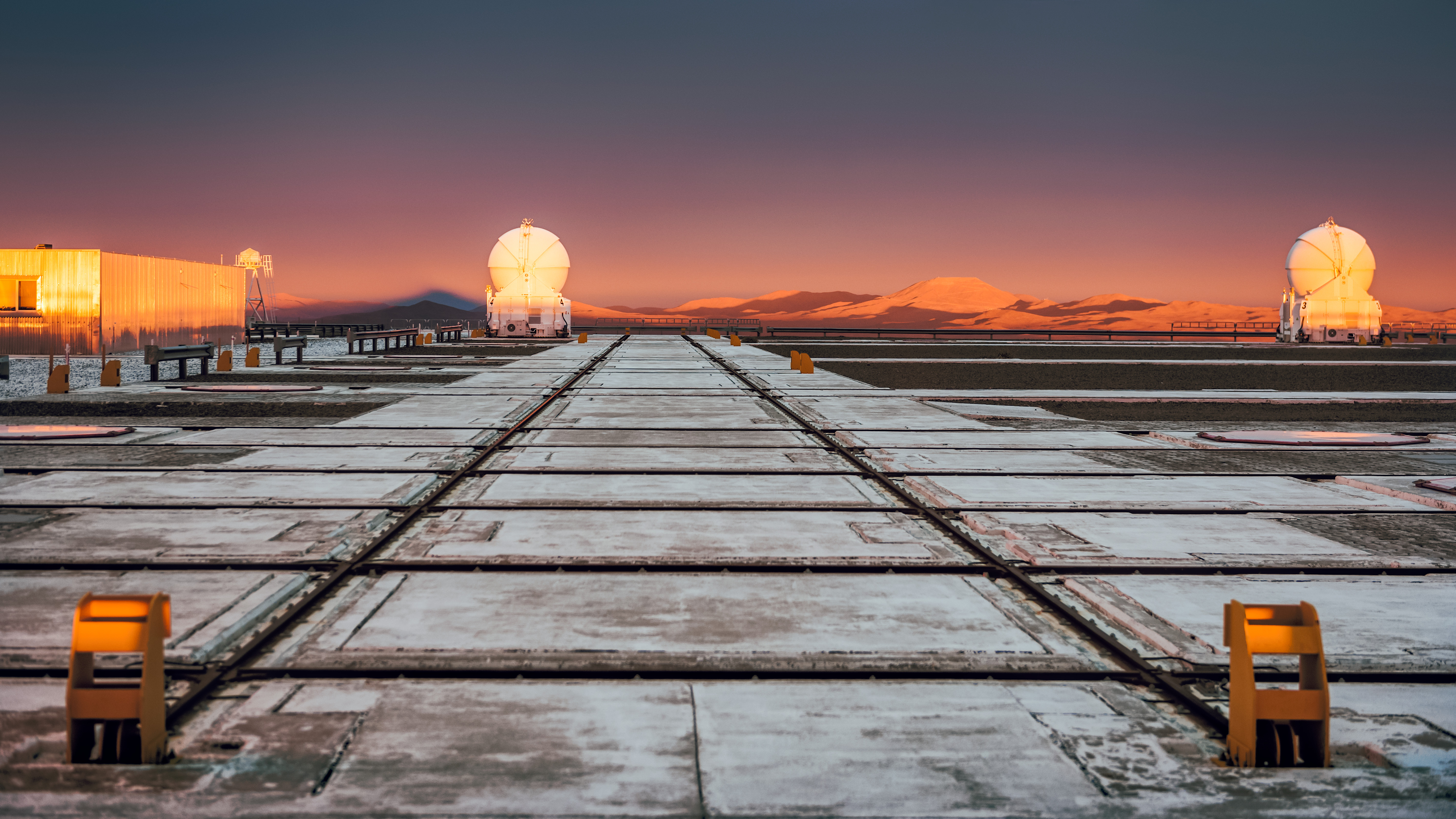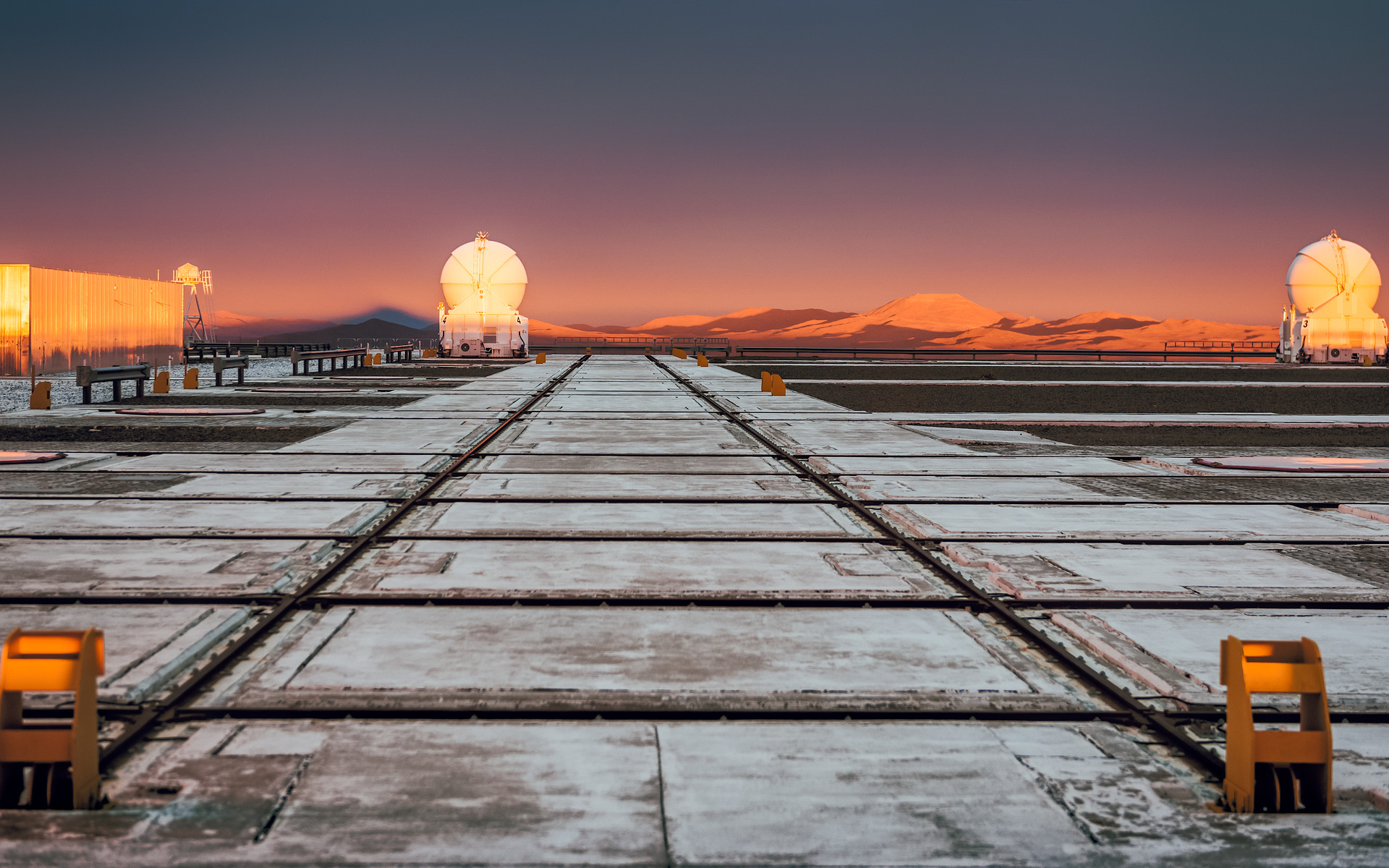 The Sun sets over ESO's Paranal Observatory, blanketing the Atacama desert with golden light.