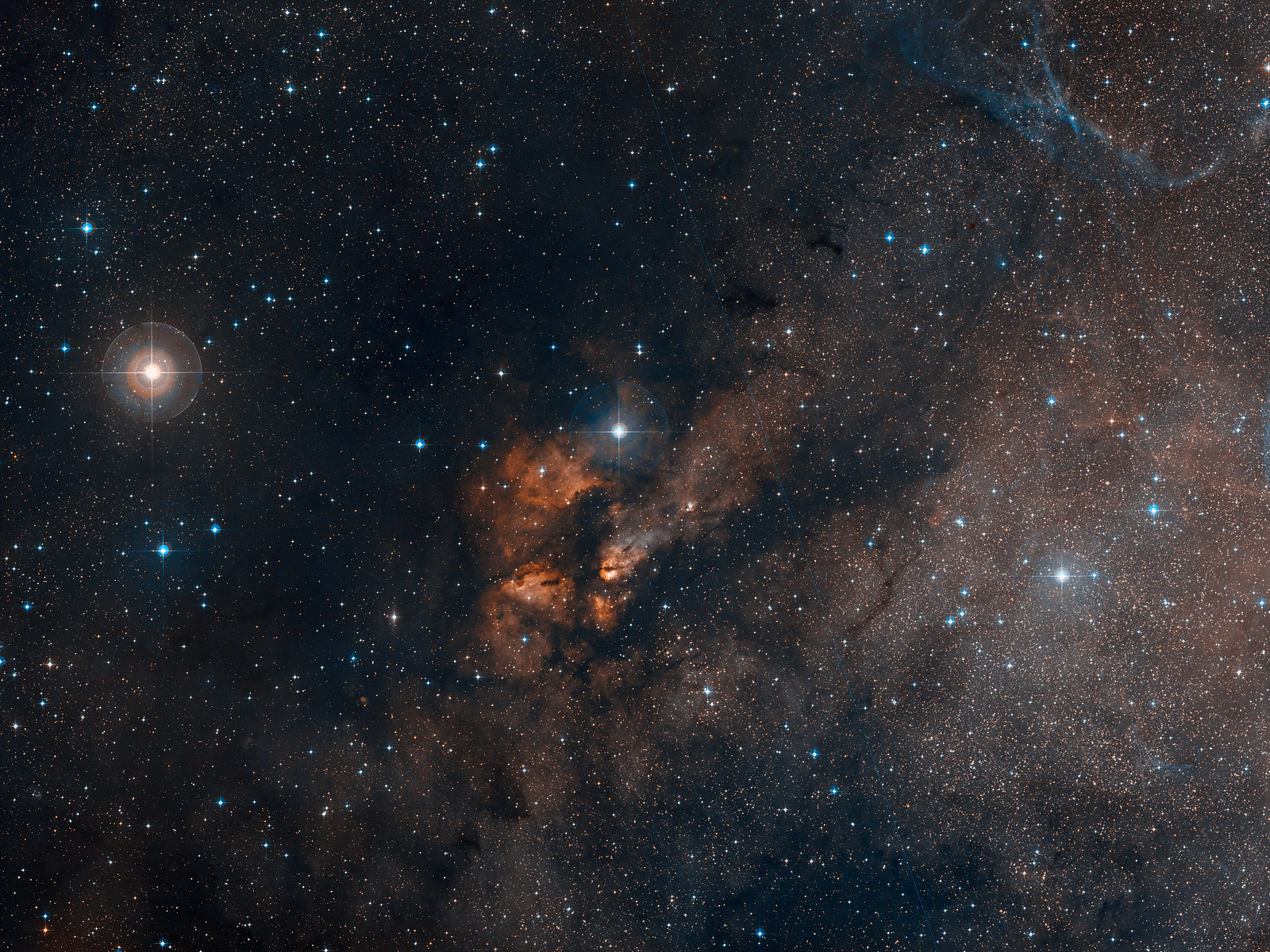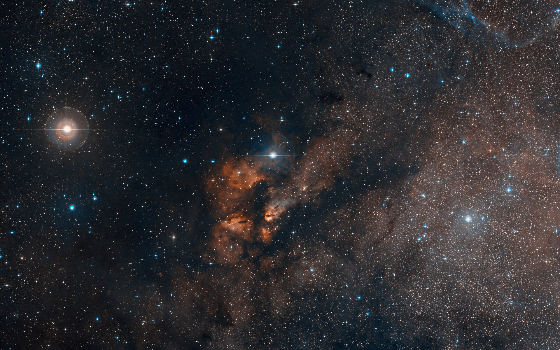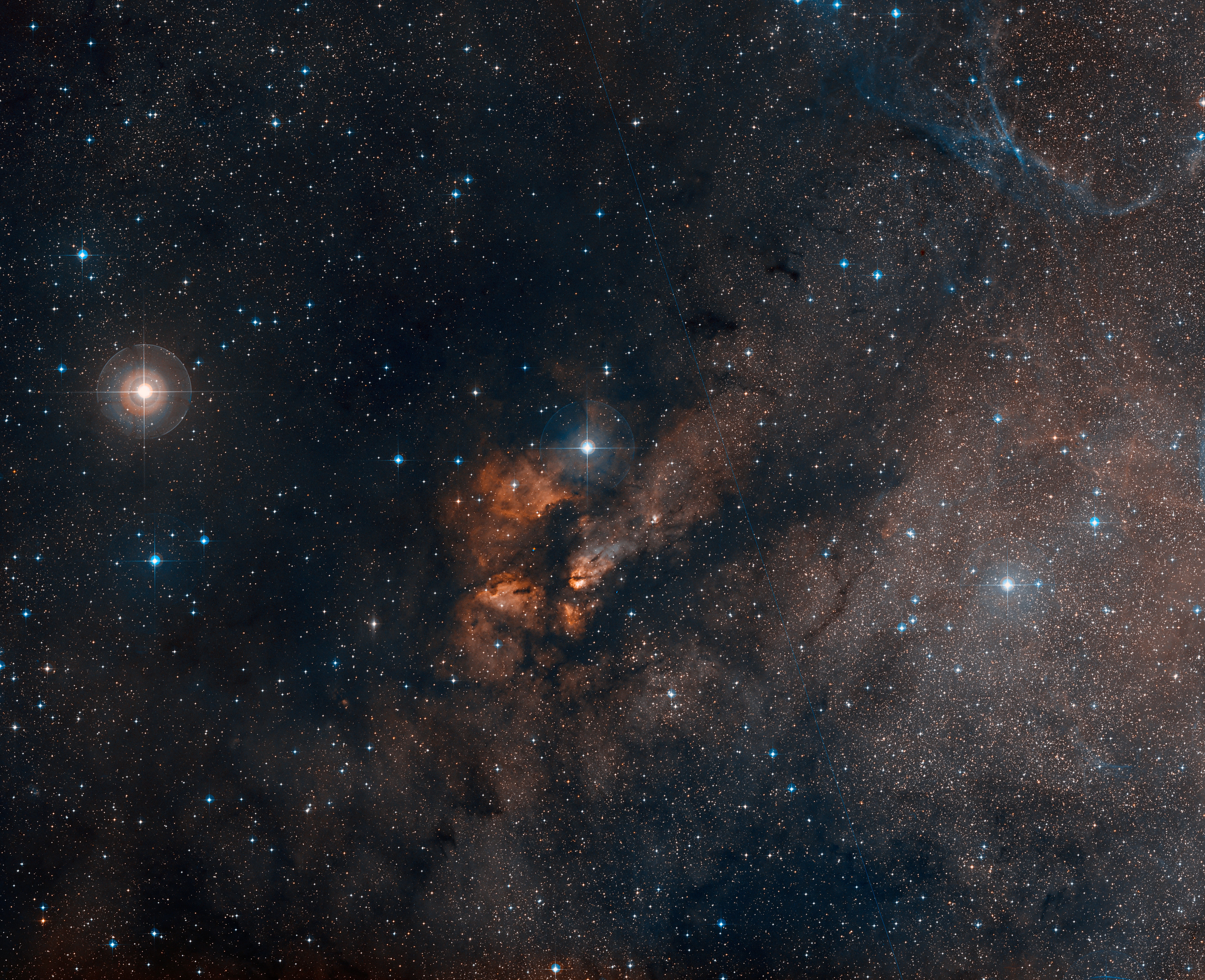 Imagem de grande angular do céu em torno do enxame estelar RCW 38