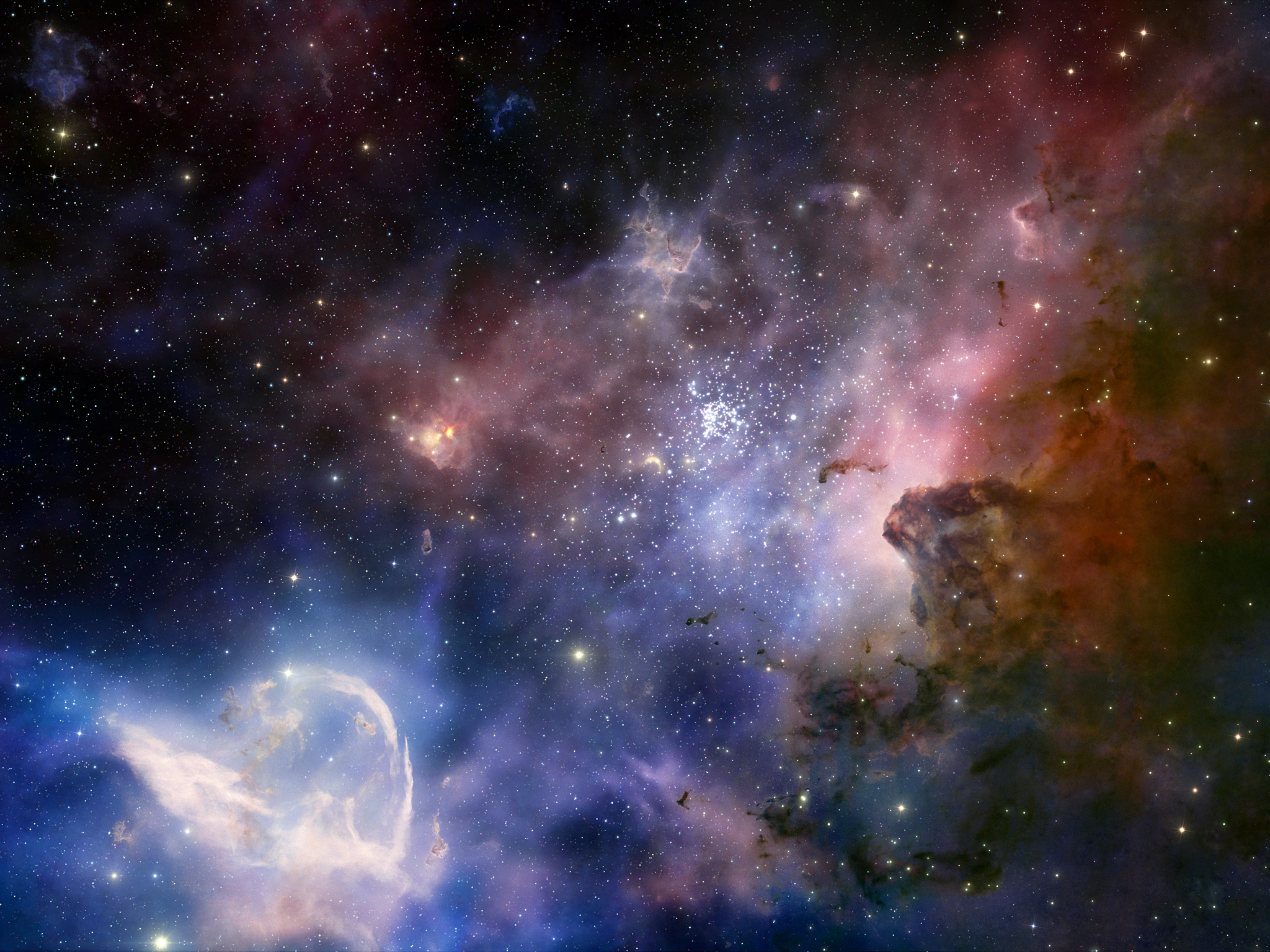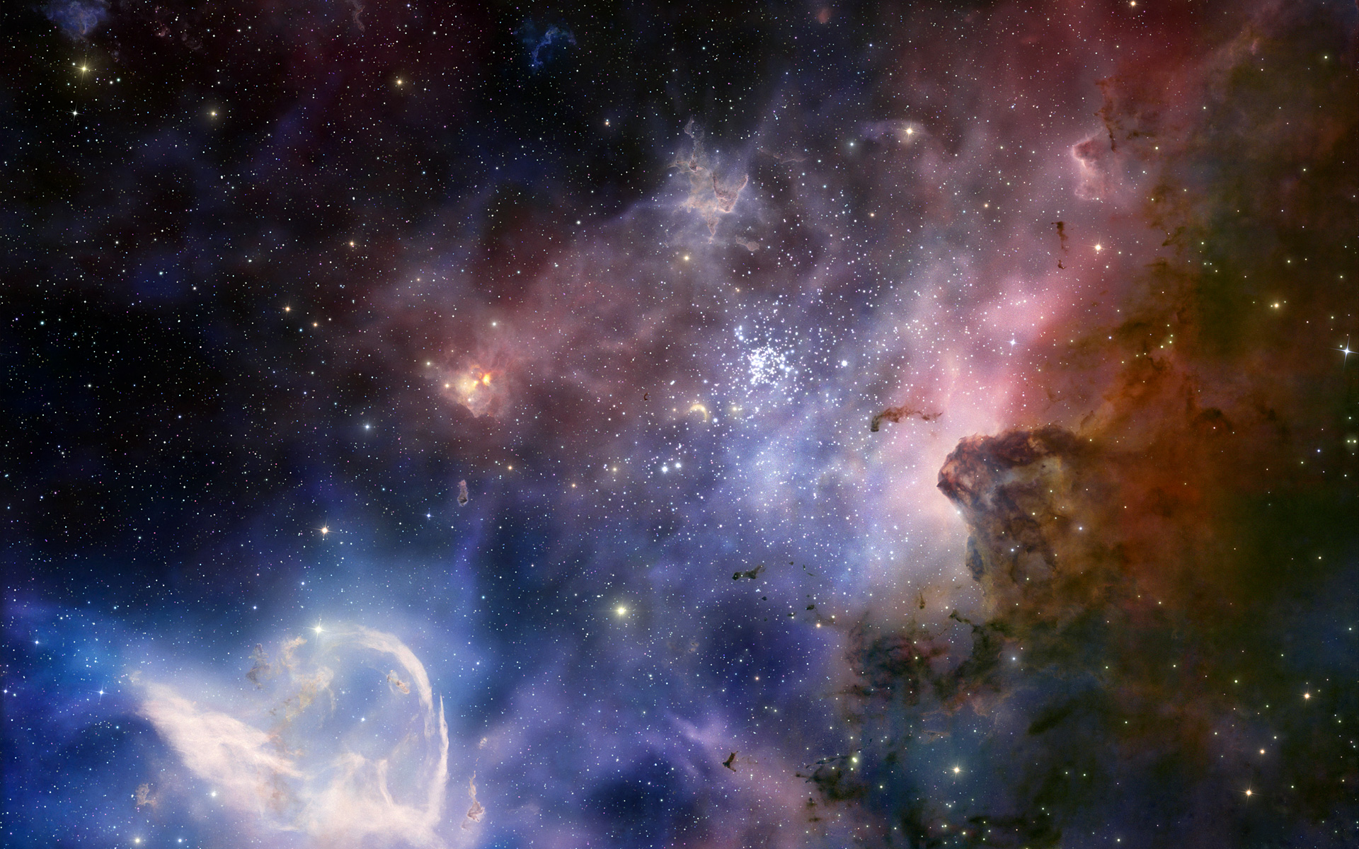 O brilho cósmico da Nebulosa Carina aparece nesta reconstrução 3D do filme Hidden Universe, lançado em cinemas IMAX e cinemas de ecrã gigante em todo o mundo e produzido pela companhia de produção australiana December Media, em associação com Film Victoria, Swinburne University of Technology, MacGillivray Freeman Films e o ESO. A Nebulosa Carina contém duas das estrelas mais luminosas e de maior massa da nossa Galáxia, a Via Láctea. A imagem original foi obtida pelo Very Large Telescope do ESO.