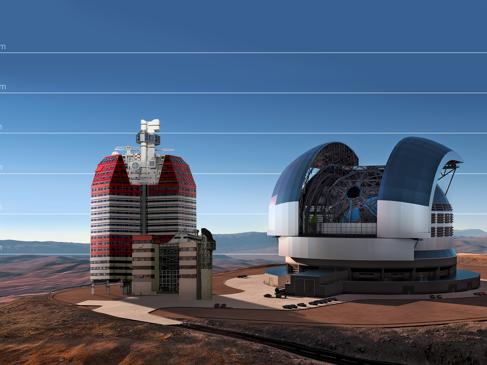 Esta impressão artística compara o E-ELT ao edifício Lila Bommen em Gothenburg, Suécia.
