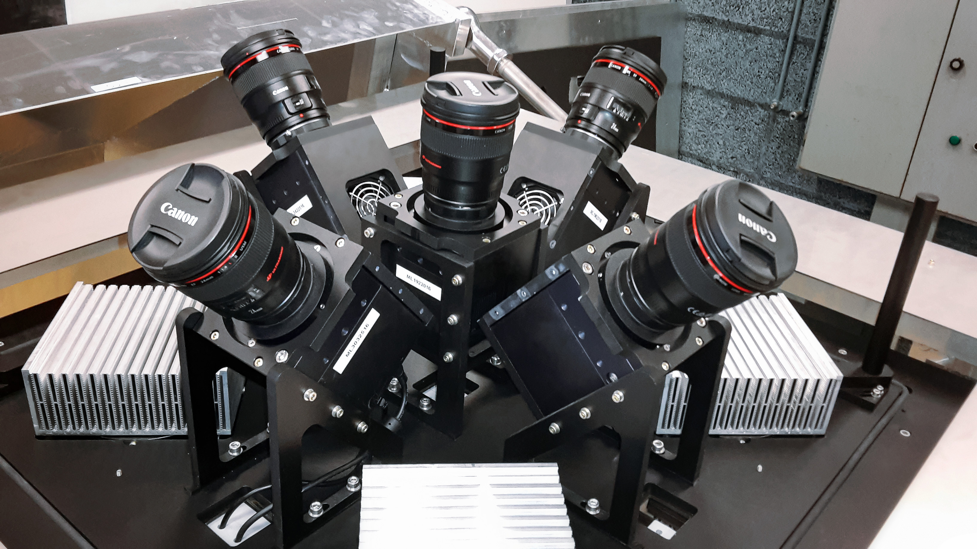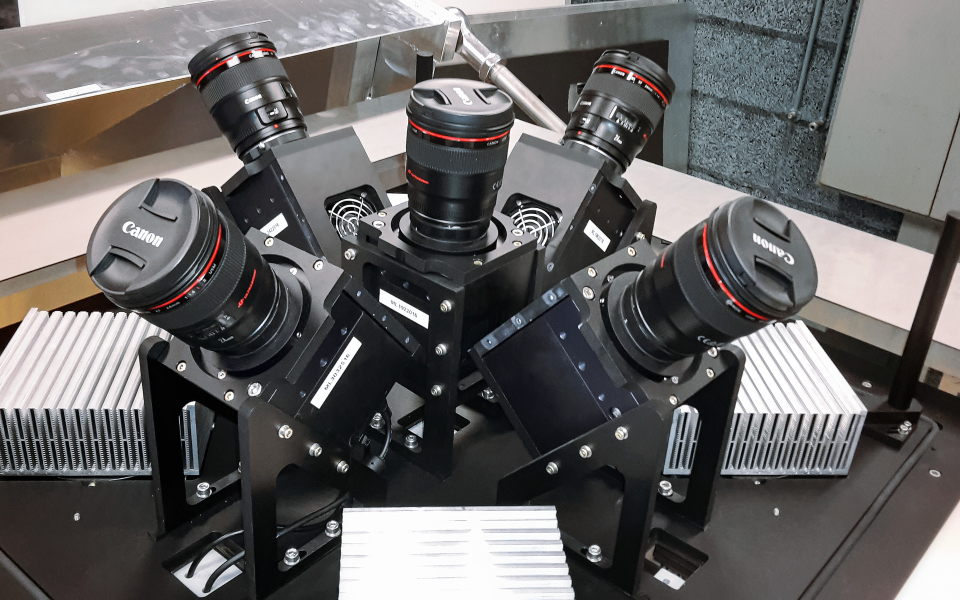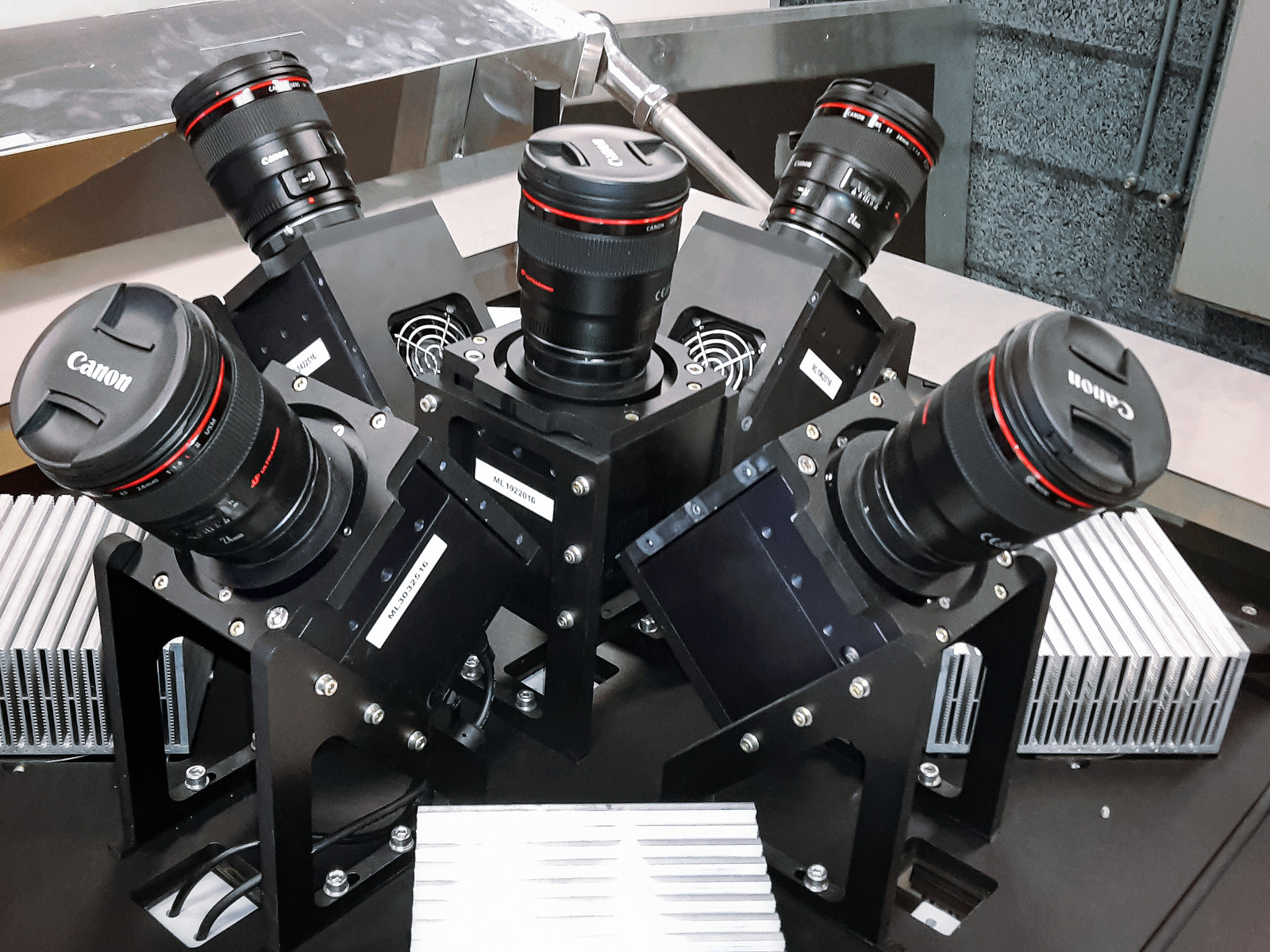 Esta imagem mostra as 5 câmaras que formam o sistema MASCARA. As 5 lentes de grande angular em conjunto permitem à MASCARA obter imagens de quase todo o céu visível de uma só vez.
