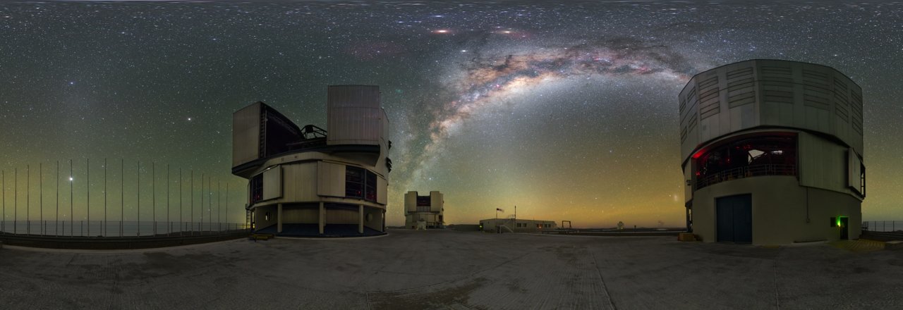 O VLT do ESO situa-se no Observatório do Paranal no Chile, um sítio ideal para encontrar cometas. O Paranal é um dos melhores observatórios do mundo, situado no deserto do Atacama sob os céus escuros do hemisfério sul. Mas cometas não são os únicos tesouros visíveis neste céu: a Via Láctea encena o seu próprio espectáculo noturno, com nuvens interestelares ricas adornadas de estrelas. Vemos também as diversas cores da luminescência atmosférica a brilhar perto do horizonte, para além de dois planetas no céu. Nesta imagem, os planetas formam um triângulo um pouco distorcido que inclui a estrela supergigante vermelha Antares, com o brilho de Marte à esquerda e o intenso brilho esbranquiçado do gigante gasoso Saturno mesmo por baixo.