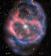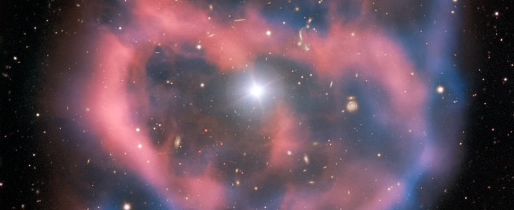 O ténue e efémero brilho que emana da nebulosa planetária ESO 577-24 é de curta duração — cerca de 10000 anos, ou seja, um piscar de olhos em termos astronómicos. O Very Large Telescope do ESO capturou esta concha resplandescente de gás ionizado — o último suspiro de uma estrela moribunda cujos restos se podem ver no centro da imagem. A concha da nebulosa planetária está em expansão, o que a torna cada vez mais ténue e fará com que eventualmente desapareça completamente.