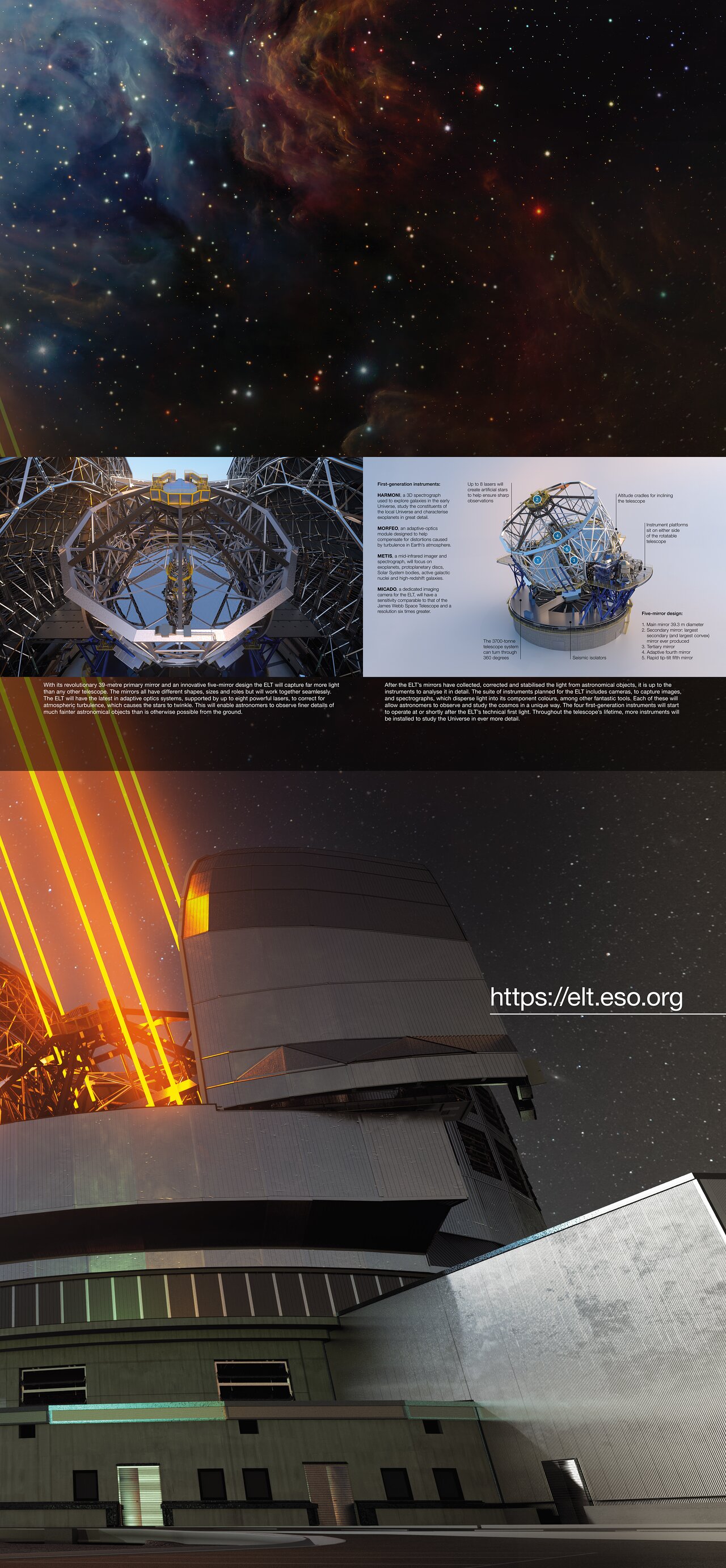 The European Organisation for Astronomical Research in the Southern Hemisphere (ESO) is the pre-eminent intergovernmental science and technology organisation in astronomy. It carries out an ambitious programme focused on the design, construction and operation of powerful ground-based observing facilities for astronomy.
