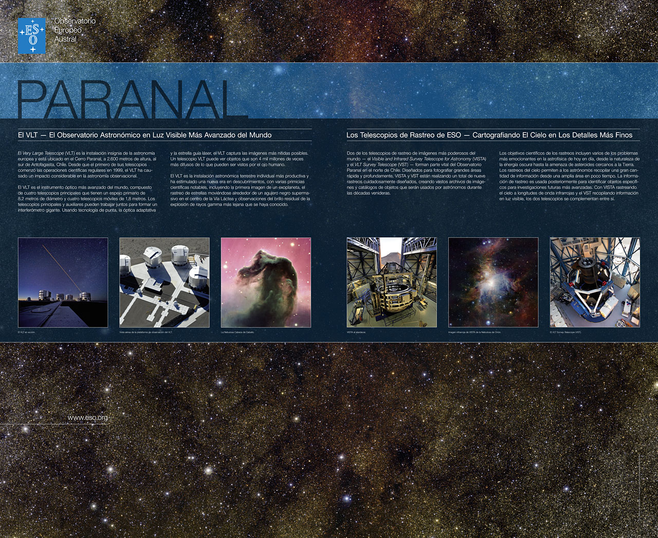 Panel in Spanish for the Vitacura Reception, with information about Paranal.