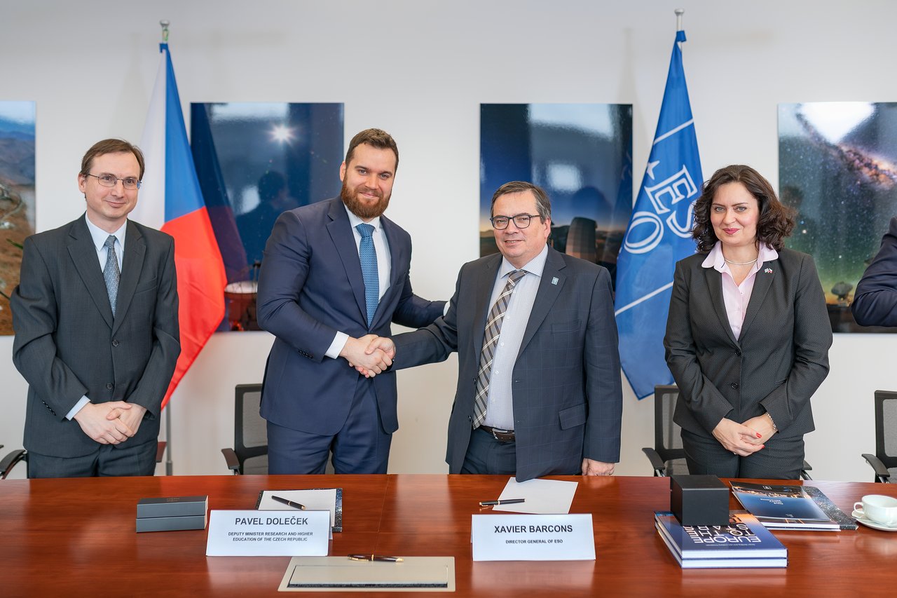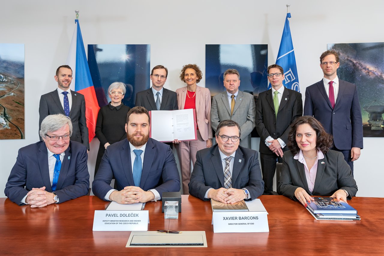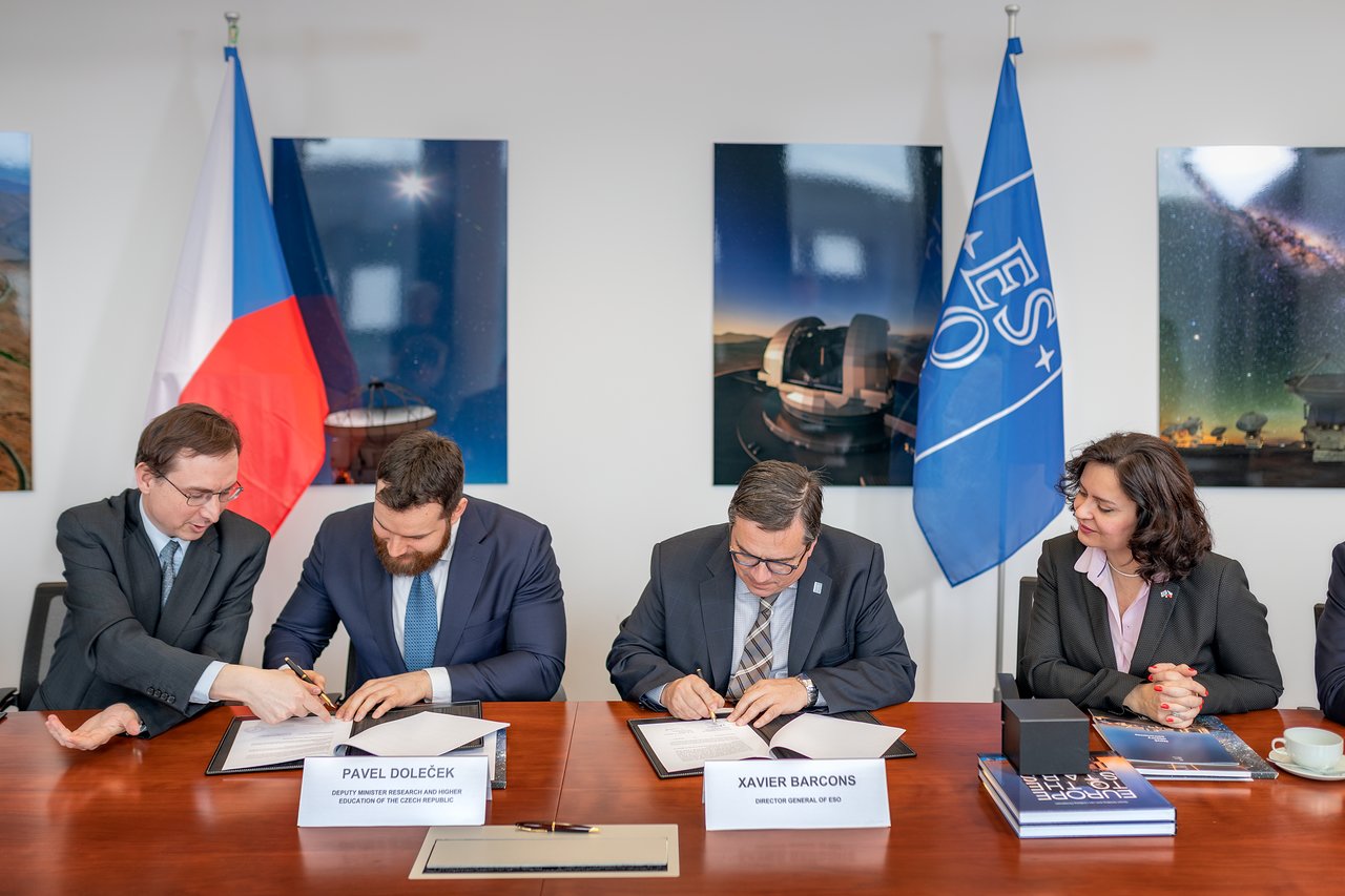 El acuerdo fue firmado por Pavel Doleček, Viceministro de Investigación y Educación Superior de la República Checa y por Xavier Barcons, Director General de ESO, durante una ceremonia que se llevó a cabo hoy en la Sede Central de ESO, en Garching cerca de Múnich, Alemania. También se contó con la presencia de: Kristina Larischová, Cónsul General de la República Checa en Múnich; Jan Kreuter, Cónsul para Asuntos de Política y Comercio; y los Delegados de la República Checa en el Consejo de ESO, Jan Buriánek y Jan Palouš.