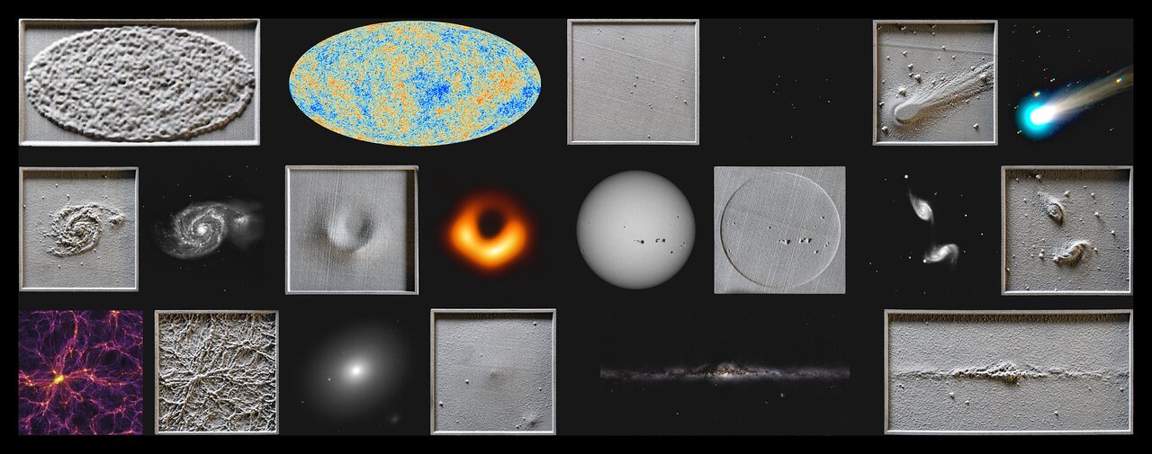 Chris Harrison, miembro de ESO, lidera un proyecto para producir y diseñar una exposición astronómica dirigida a personas ciegas o con discapacidad visual. Un Tour a Oscuras por el Universo ofrece una experiencia táctil del Universo usando modelos 3D de imágenes astronómicas, y sonificación de conjuntos de datos astronómicos reales. La exposición se estrena en el Festival Británico de la Ciencia el 13 de septiembre de 2019.
