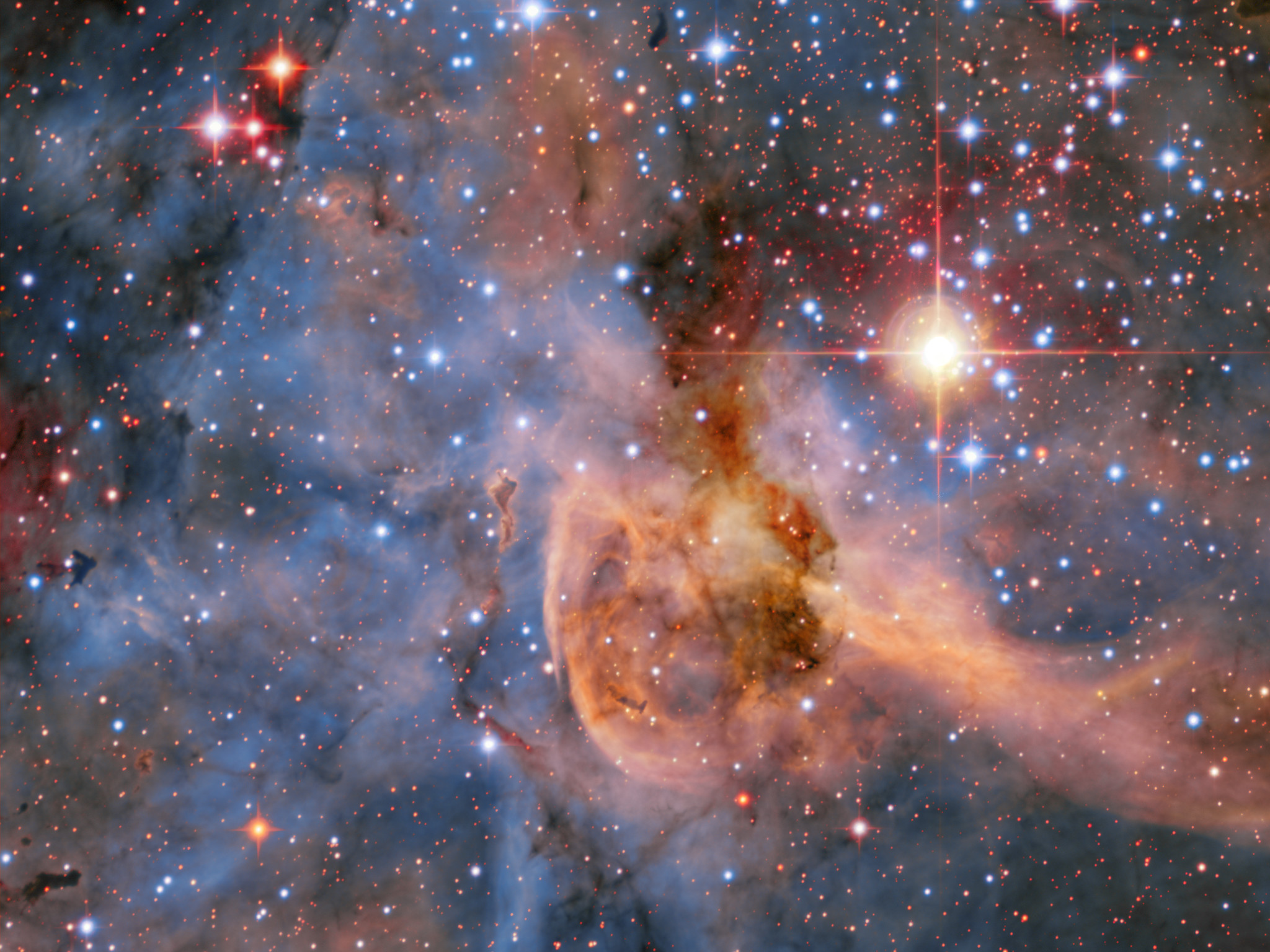 Esta imagen de primera luz del telescopio Europa del SSO (SPECULOOS Southern Observatory) muestra el corazón de la nebulosa Carina.