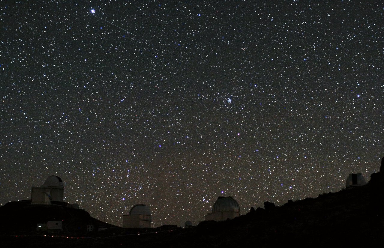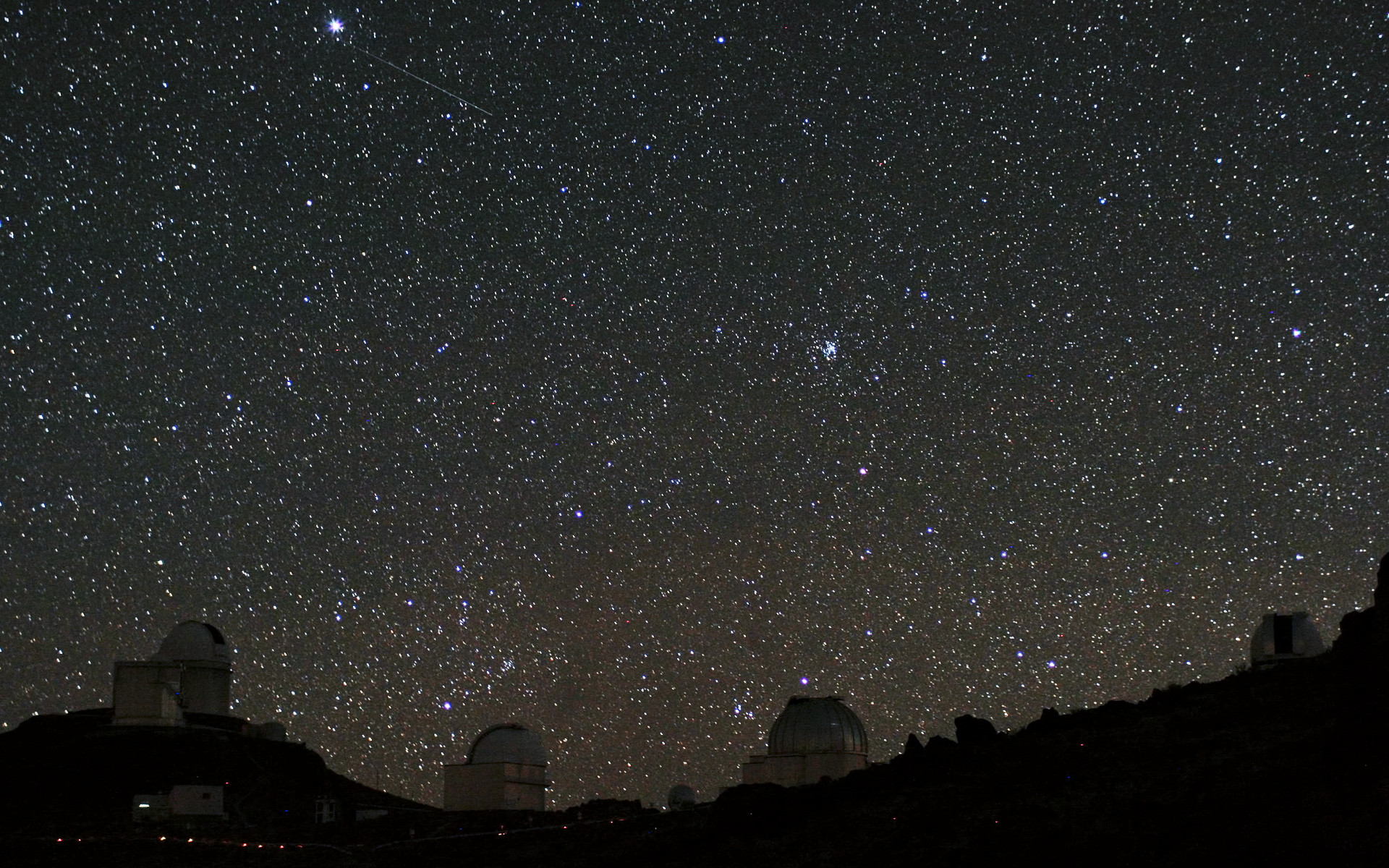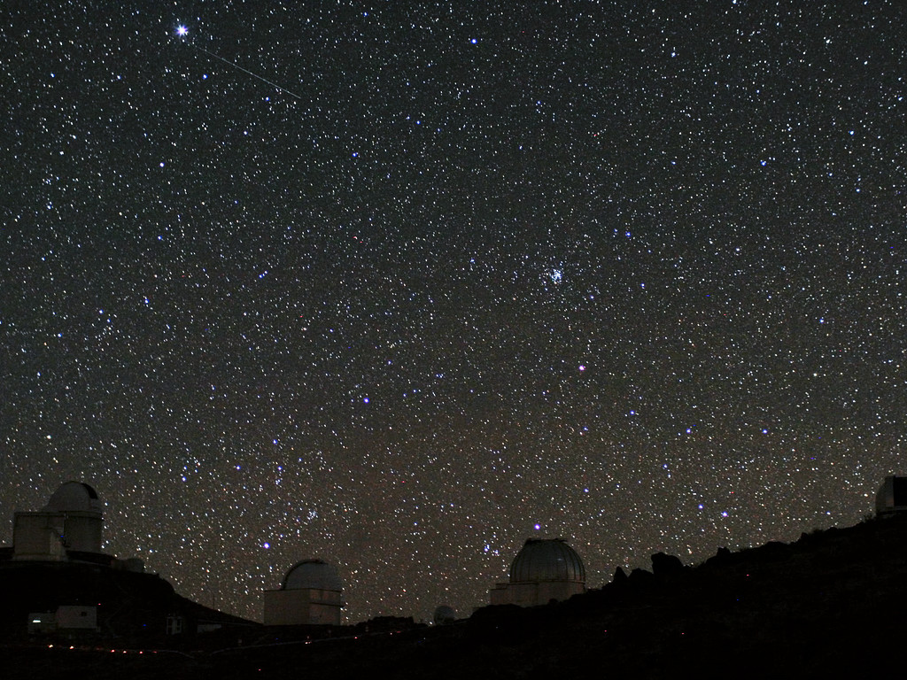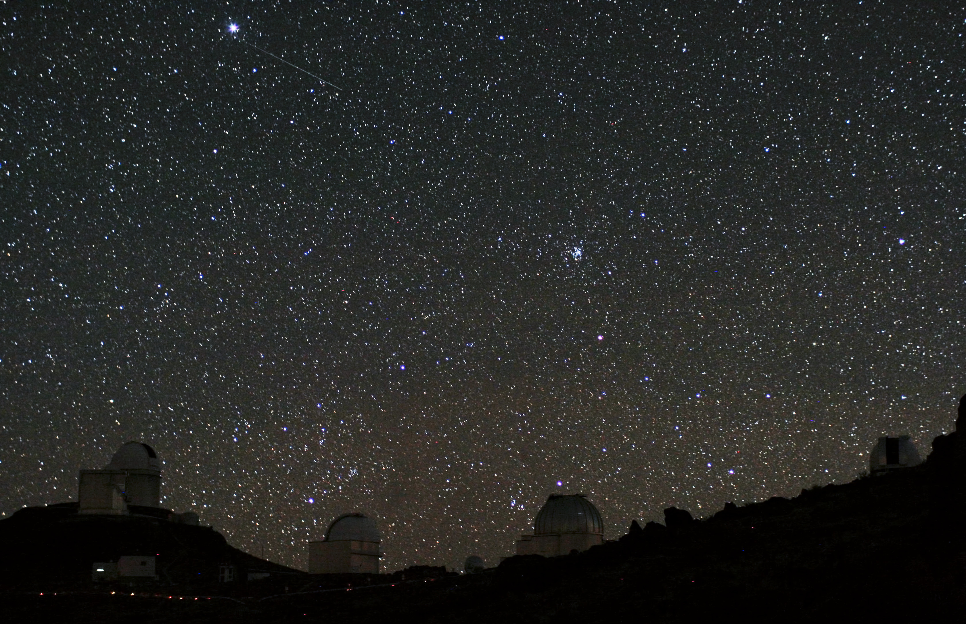 La débil estela de luz que se ve en la parte superior del cielo en esta exposición de 20 segundos no es un meteoro, sino CoRoT (Convection Rotation and planetary Transits space telescope). CoRoT busca planetas observando la disminución en la intensidad de la luz de una estrella provocada por el paso de un planeta frente a ella — el método de tránsitos. La situación del telescopio espacial, sobre la atmósfera de la Tierra, mejora la precisión de sus observaciones al eliminar el titilar de las estrellas. Los posibles planetas detectados con este método de tránsitos se confirman utilizando técnicas complementarias como el método de la velocidad radial. De hecho, la misma noche en que se tomó esta fotografía, ¡HARPS estaba siguiendo candidatos a exoplanetas que habían sido detectados por CoRoT!