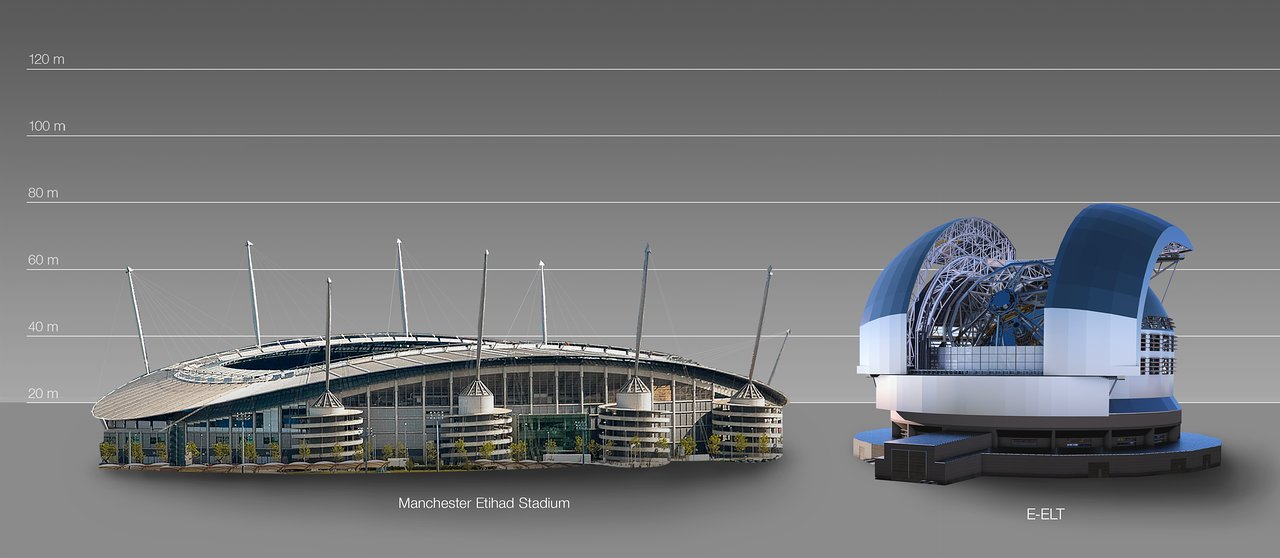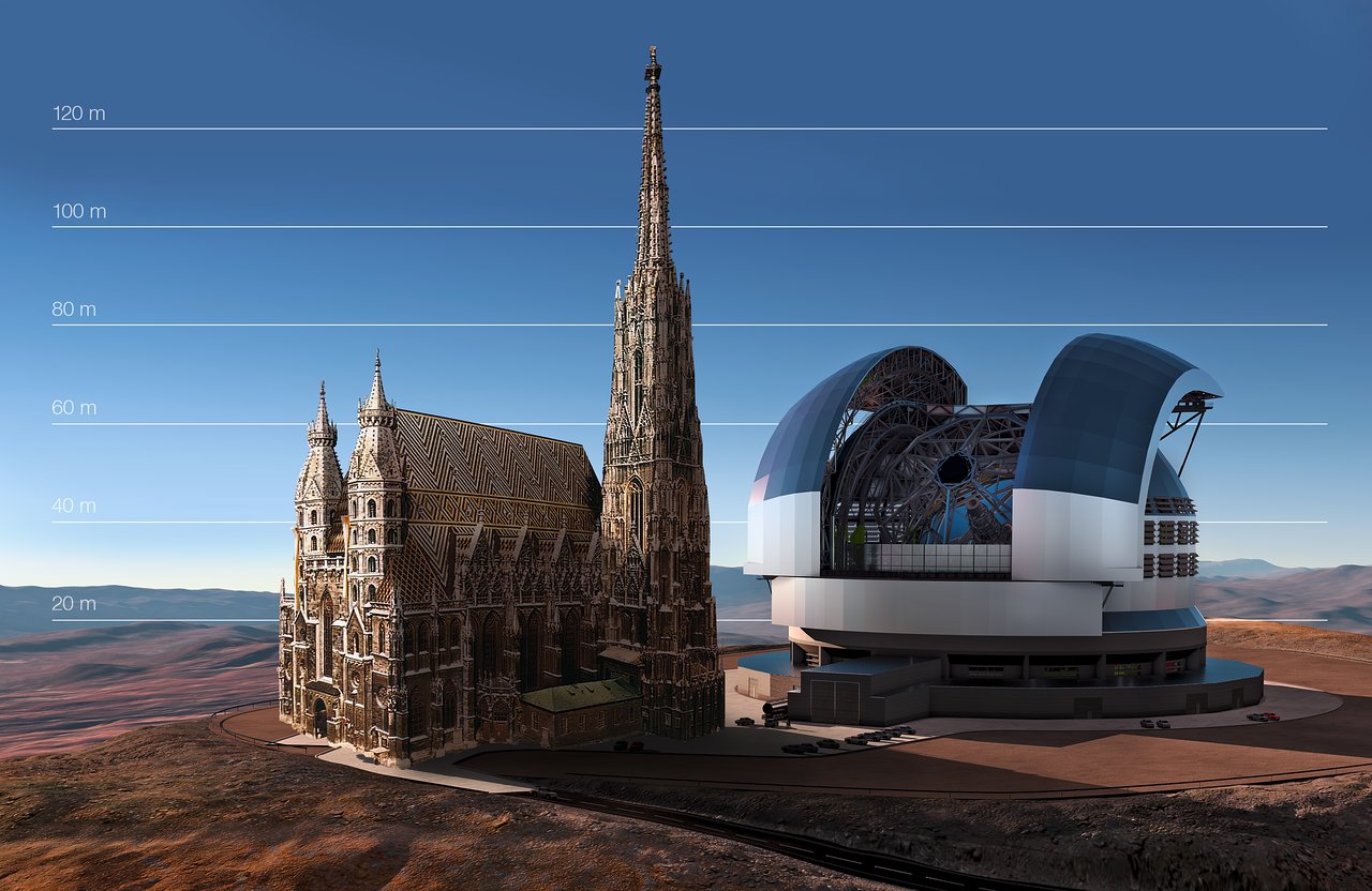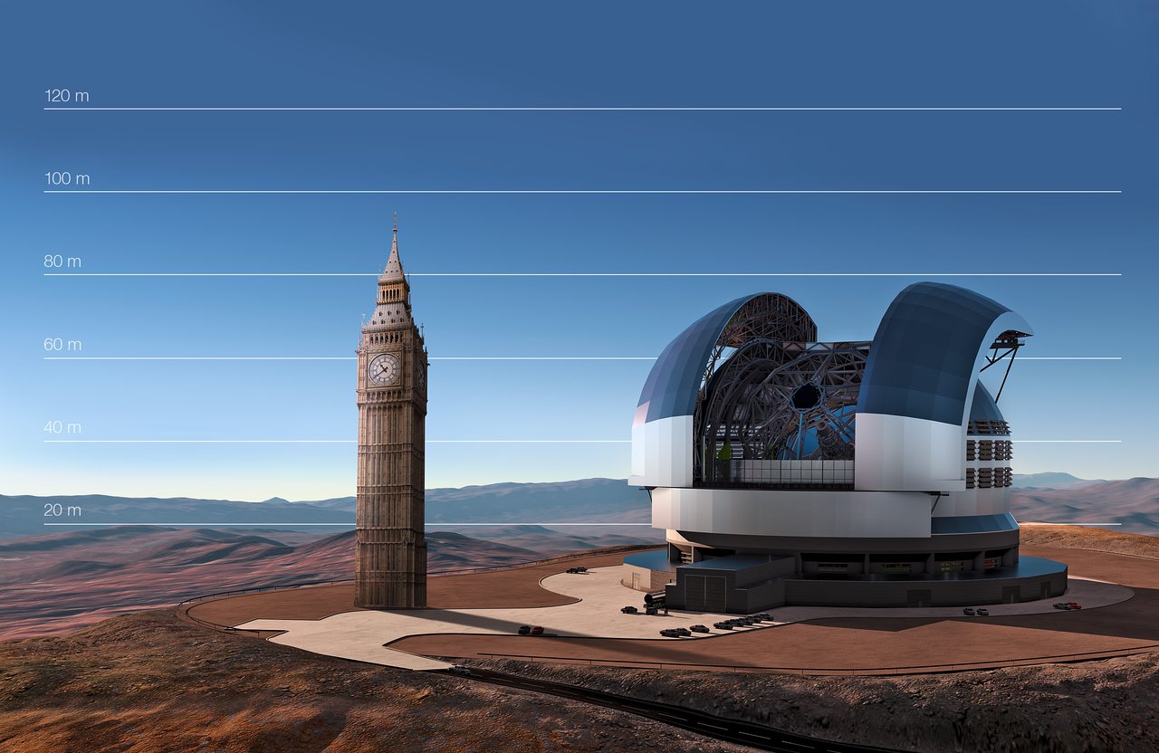 European Extremely Large Telescope (E-ELT), med en huvudspegel som är 39 meter i diameter, kommer att vara det största teleskopet i världen för synligt och infrarött ljus, och sannerligen världens största öga mot himlen. Det kommer att byggas i norra Chile, på en plats som redan förberetts.