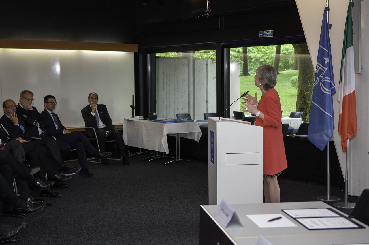 Kontraktet för att bygga teleskopets kupol och struktur skrevs på av ESO:s generaldirektör, Tim de Zeeuw, styrelseordföranden för Astaldi, Paolo Astaldi, och vd för Cimolai, Luigi Cimolai. ESO hade dessutom nöjet att få välkomna Italiens minister för utbildning, högskolor och forskning, Stefania Giannini, till ceremonin, som också gästades av Renato Cianfarani, Italiens konsul i München, Patrick Roche, ordförande för ESO:s råd, samt Italiens delegaterna från ESO:s råd, Nicolò D’Amico (som även är ordförande för INAF) och Matteo Pardo, vetenskaplig attaché vid Italiens ambassad i Berlin. Närvarade gjorde även Gianpietro Marchiori, vd för EIE samt andra gäster och representanter för konsortiet.
