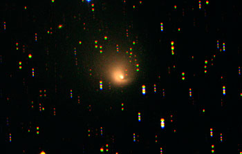 13 mars 2002: One of the most fundamental tasks of modern astrophysics is the study of the evolution of the Universe . This is a daunting undertaking that requires extensive observations of large samples of objects in order to produce reasonably detailed maps of the distribution of galaxies in the Universe and to perform statistical analysis. Much effort is now being put into mapping the relatively nearby space and thereby to learn how the Universe looks today . But to study its evolution, we must compare this with how it looked when it still was young . This is possible, because astronomers can "look back in time" by studying remote objects - the larger their distance, the longer the light we now observe has been underway to us, and the longer is thus the corresponding "look-back time." This may sound easy, but it is not. Very distant objects are very dim and can only be observed with large telescopes. Looking at one object at a time would make such a study extremely time-consuming and, in practical terms, impossible. To do it anyhow, we need the largest possible telescope with a highly specialised, exceedingly sensitive instrument that is able to observe a very large number of (faint) objects in the remote universe simultaneously. The VLT VIsible Multi-Object Spectrograph (VIMOS) is such an instrument. It can obtain many hundreds of spectra of individual galaxies in the shortest possible time; in fact, in one special observing mode, up to 6400 spectra of the galaxies in a remote cluster during a single exposure, augmenting the data gathering power of the telescope by the same proportion. This marvellous science machine has just been installed at the 8.2-m MELIPAL telescope, the third unit of the Very Large Telescope (VLT) at the ESO Paranal Observatory. A main task will be to carry out 3-dimensional mapping of the distant Universe from which we can learn its large-scale structure. "First light" was achieved on February 26, 2002, and a first series of test observations has successfully demonstrated the huge potential of this amazing facility. Much work on VIMOS is still ahead during the coming months in order to put into full operation and fine-tune the most efficient "galaxy cruncher" in the world. VIMOS is the outcome of a fruitful collaboration between ESO and several research institutes in France and Italy, under the responsibility of the Laboratoire d'Astrophysique de Marseille (CNRS, France). The other partners in the "VIRMOS Consortium" are the Laboratoire d'Astrophysique de Toulouse, Observatoire Midi-Pyrénées, and Observatoire de Haute-Provence in France, and Istituto di Radioastronomia (Bologna), Istituto di Fisica Cosmica e Tecnologie Relative (Milano), Osservatorio Astronomico di Bologna, Osservatorio Astronomico di Brera (Milano) and Osservatorio Astronomico di Capodimonte (Naples) in Italy.