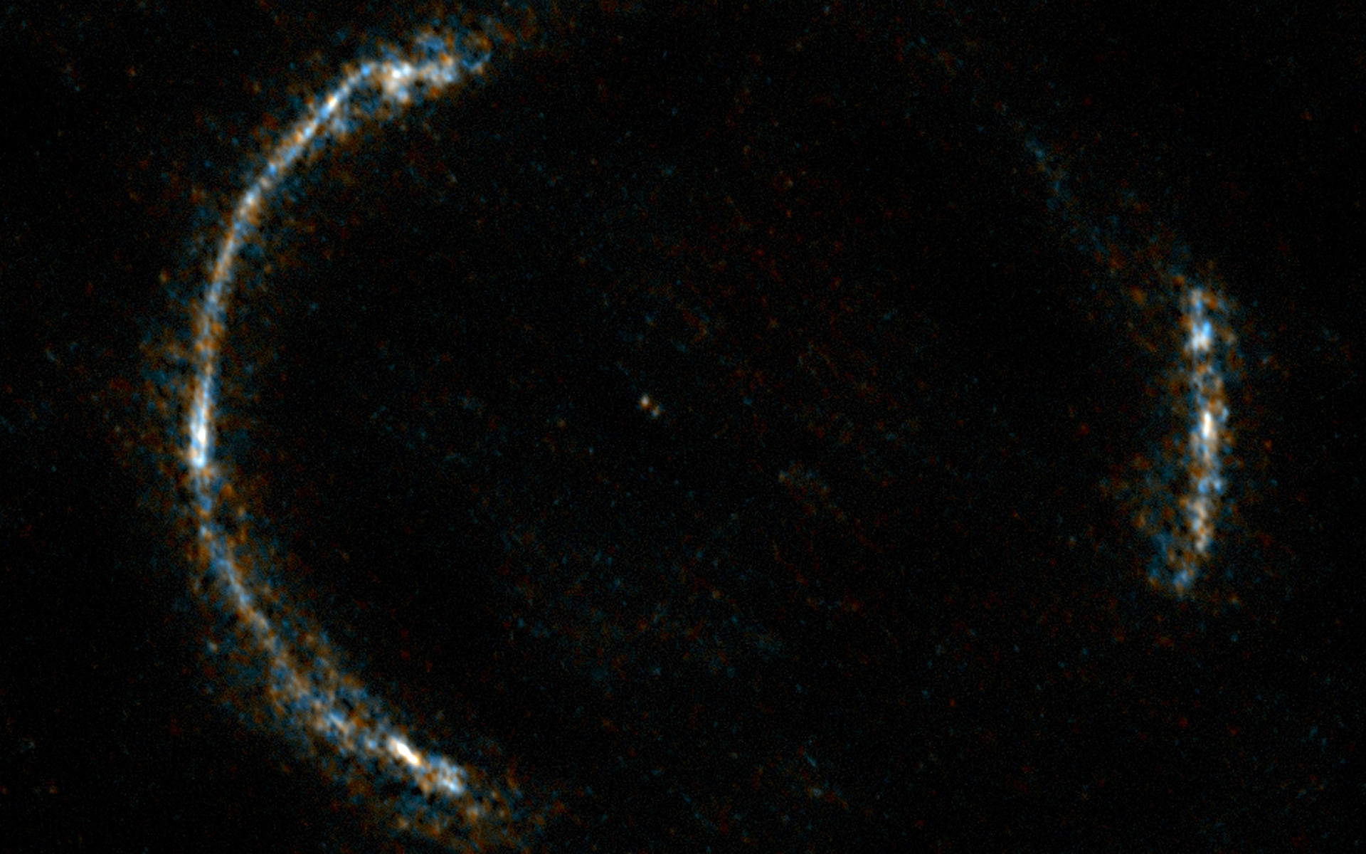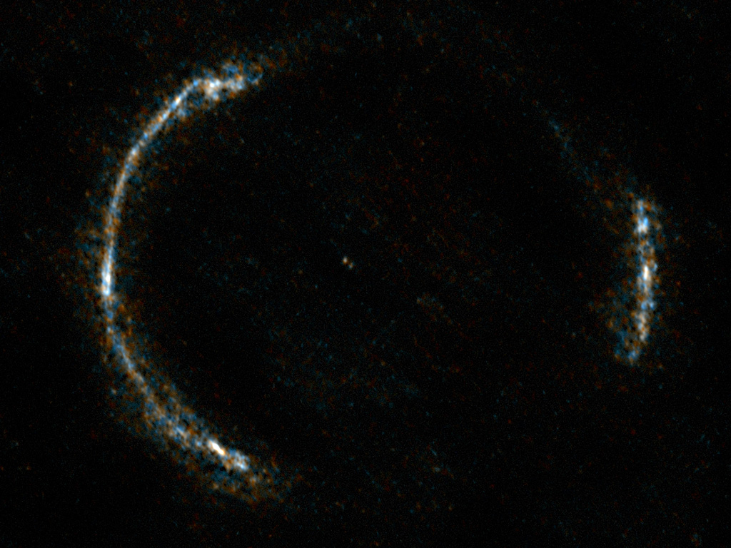 Im Rahmen der Long Baseline-Kampagne von ALMA ist eine eindrucksvoll detailgetreue Aufnahme einer entfernten Galaxie entstanden, deren Leuchten durch den Gravitationslinseneffekt abgebildet wird. Das Bild zeigt eine vergrößerte Ansicht der Sternentstehungsregionen der Galaxie, die in ihrer Art einzigartig sind, da ihresgleichen noch nie solcher Detailschärfe in einer solch weit entfernten Galaxie beobachtet werden konnten. Die neuen Beobachtungen sind um einiges detaillierter als jene des Hubble-Weltraumteleskops von NASA undESA und bringen Ansammlungen von Sternentstehung in der Galaxie zum Vorschein, die riesigen Versionen des Orionnebels gleichen.