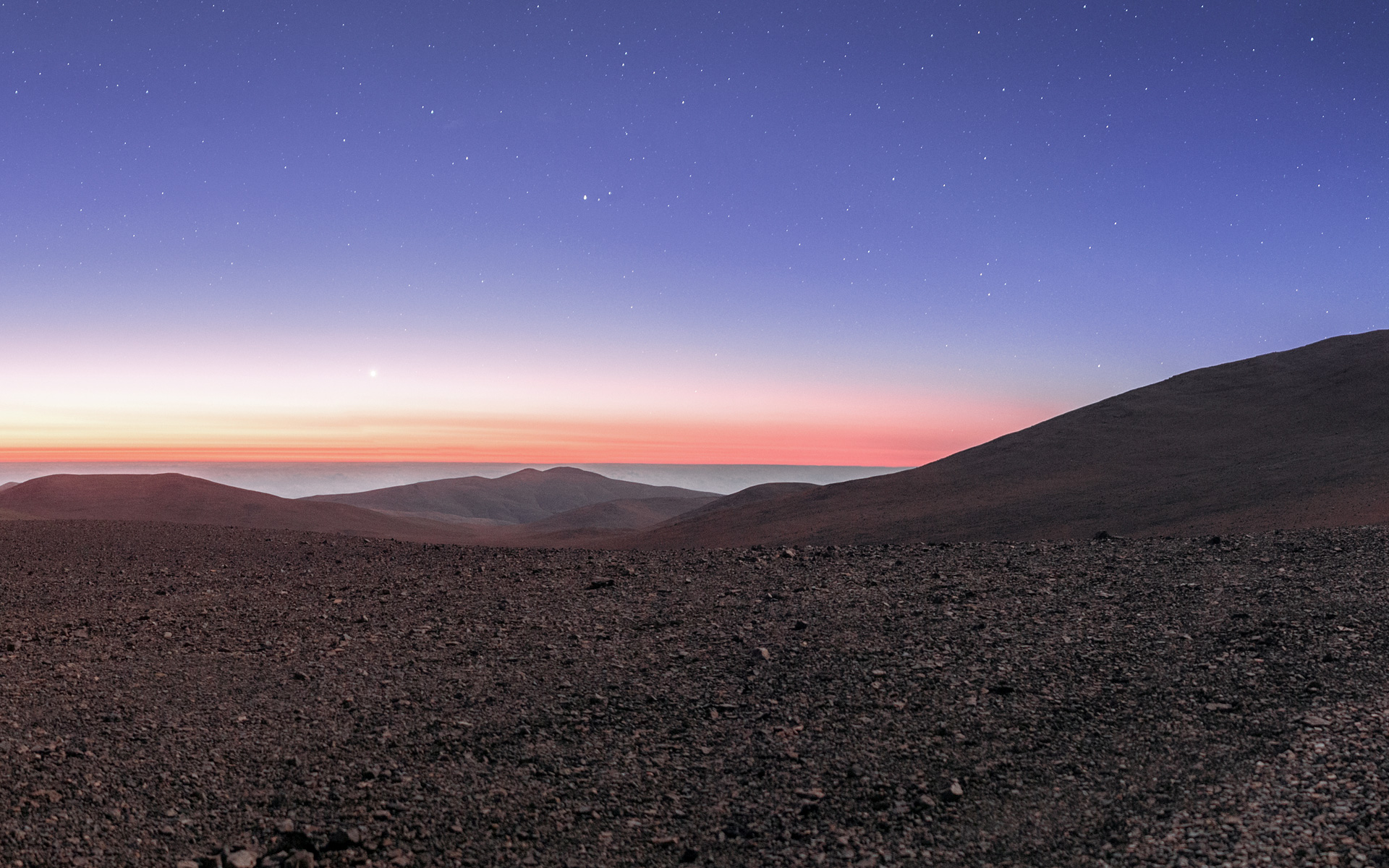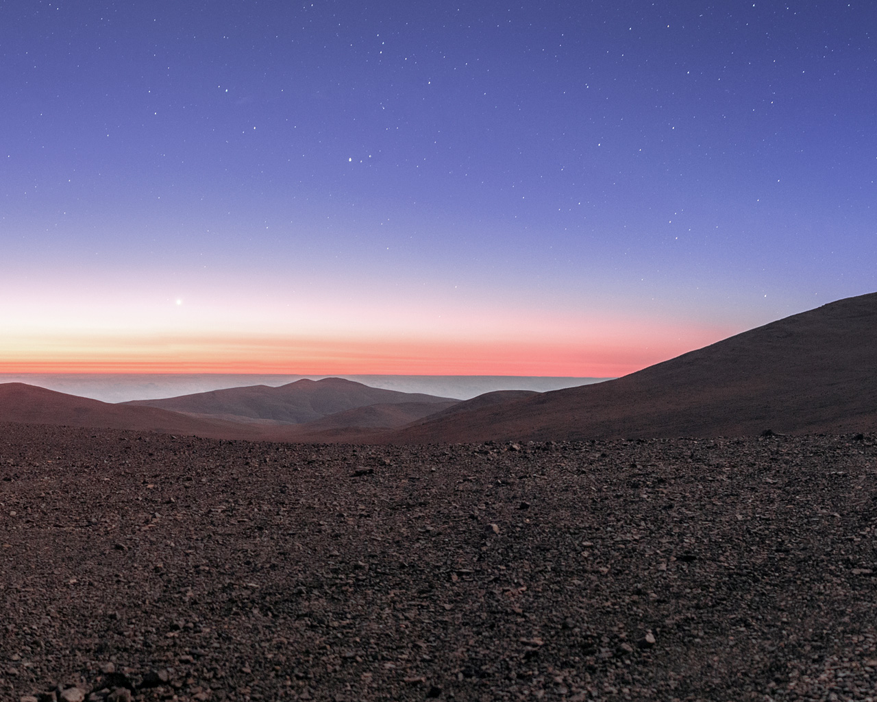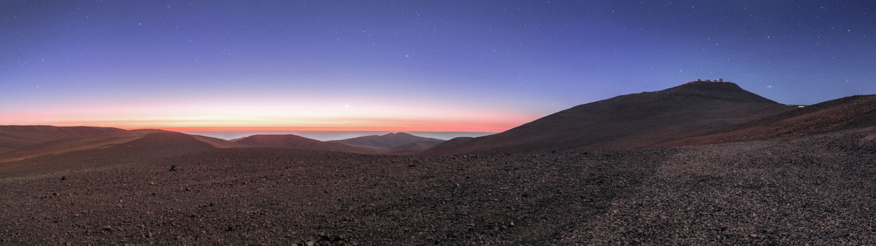 Dieses Landschaftspanorama der Gegend um das Paranal Observatorium der ESO in der chilenischen Atacama-Wüste wurde von ESO-Fotobotschafter Petr Horálek aufgenommen.
