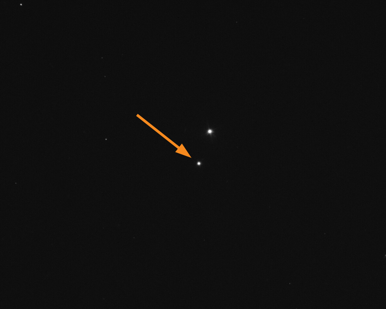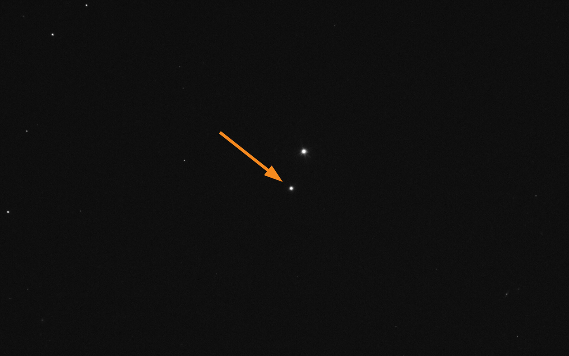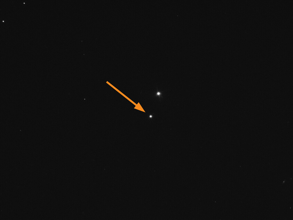 La flèche dans cette image de la semaine marque l'astéroïde Didymos tel qu'il a été vu dans la nuit du 25 au 26 septembre avec le Very Large Telescope (VLT) de l'ESO au Chili. Didymos possède une lune plus petite de 160 mètres de long appelée Dimorphos (non visible ici). Le 26 septembre à 23h14 UTC, une sonde de la NASA devrait s'écraser sur cette lune dans le cadre du Double Asteroid Redirection Test (DART). Notre VLT, comme de nombreux autres télescopes dans le monde, sera à l'affût.