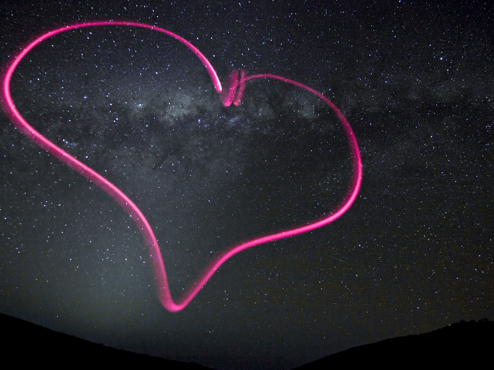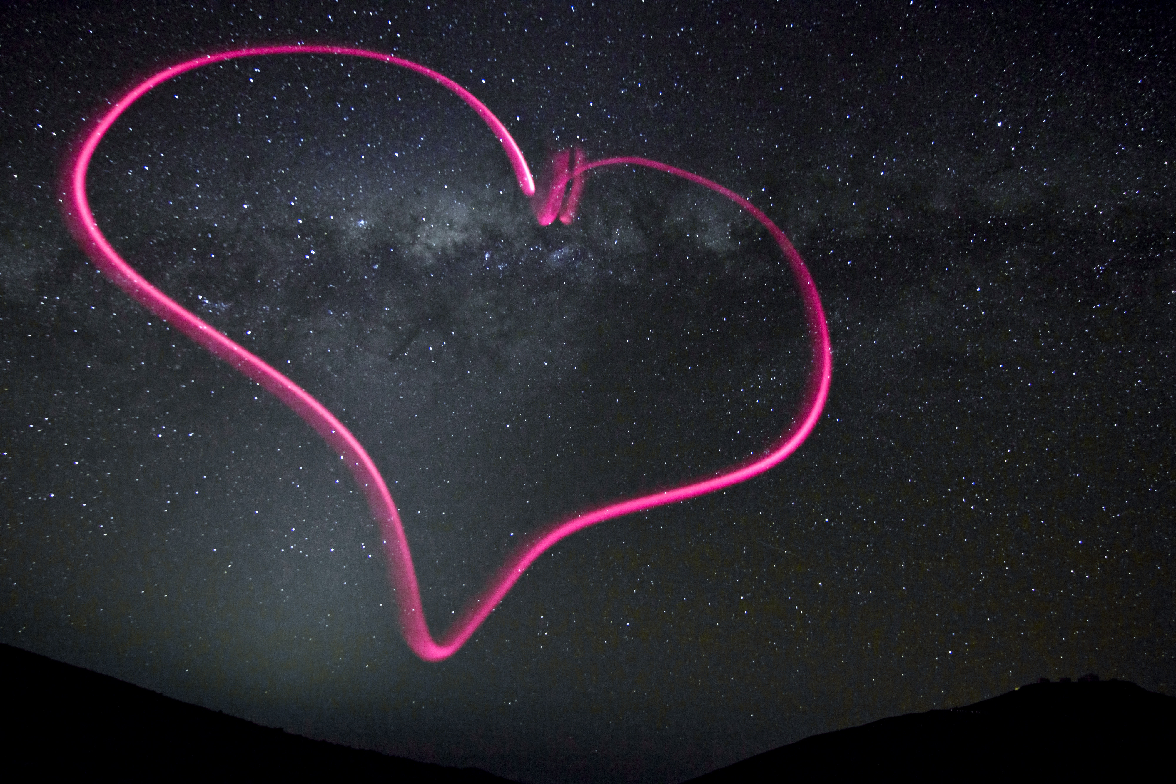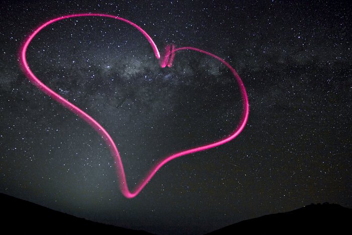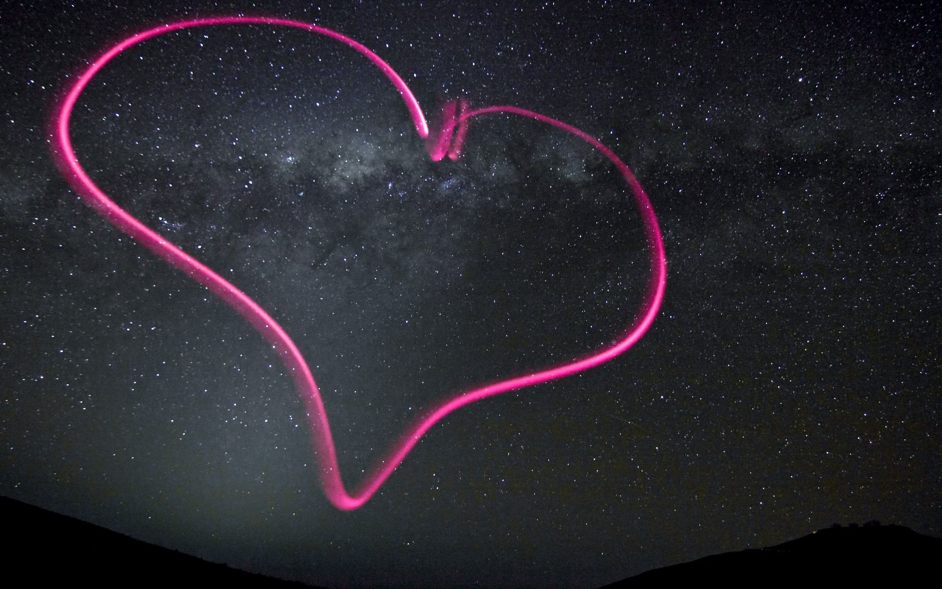 C'è molto da amare nell'astronomia, e -- in tempo per San Valentino -- la fotografa Julien Girard ci offre un esempio "dal cuore" in questa immagine. Un luminoso simbolo rosa d'amore appare fluttuante in contrasto sulla buia notte sopra l'Osservatorio del Paranal nel nord del Cile. Girard ha disegnato questo cuore in aria con l'aiuto di un laser durante l'esposizione da 25 secondi ad una macchina fotografica.