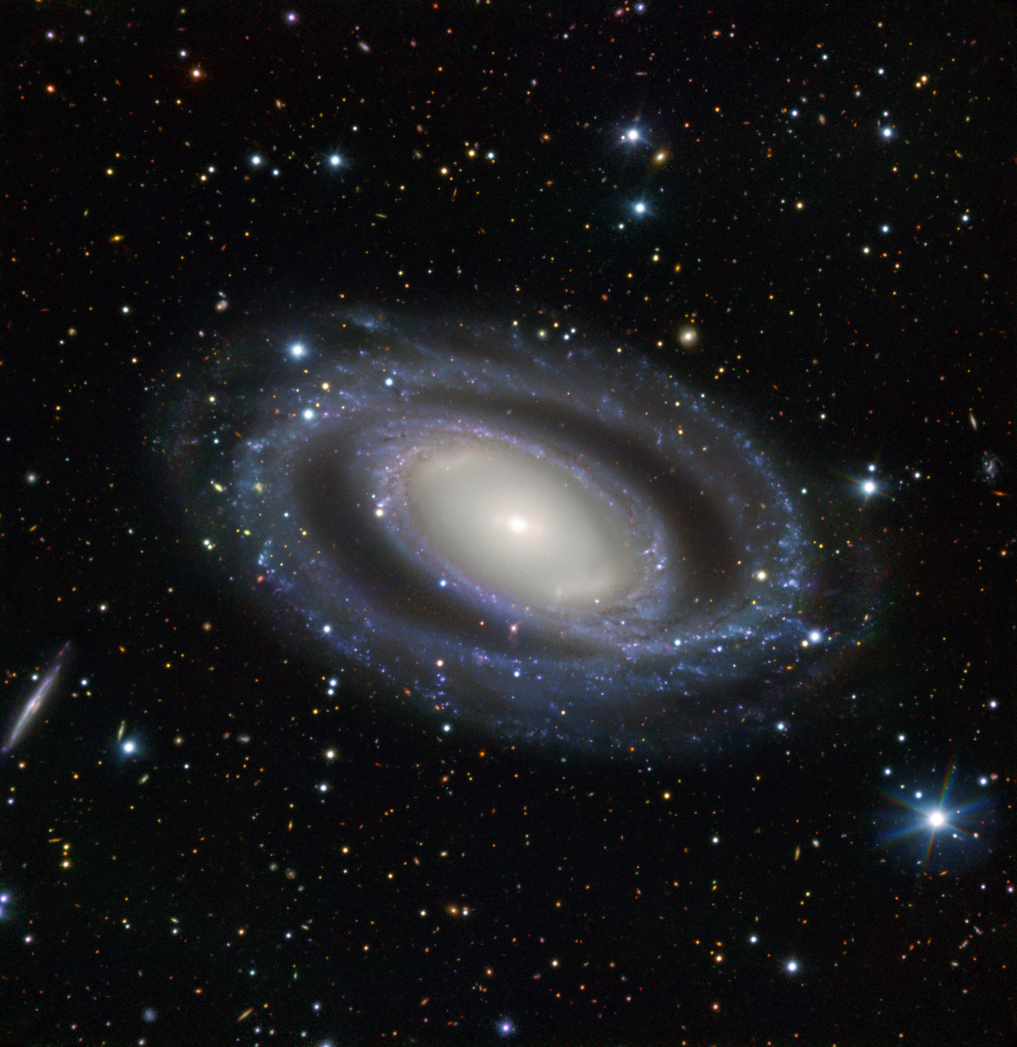 Ad una distanza di circa 95 milioni di anni-luce, nella costellazione australe di Ottante, si trova NGC 7098 - una galassia spirale intrigante con numerose caratteristiche doppie. La prima di queste è il duo di distinte strutture a forma di anello attorno al nebuloso cuore della galassia. Esse sono i bracci spirali, che si sono arrotolati attorno al cuore luminoso della galassia. Questa regione centrale ospita un’altra caratteristica doppia: una doppia barra.