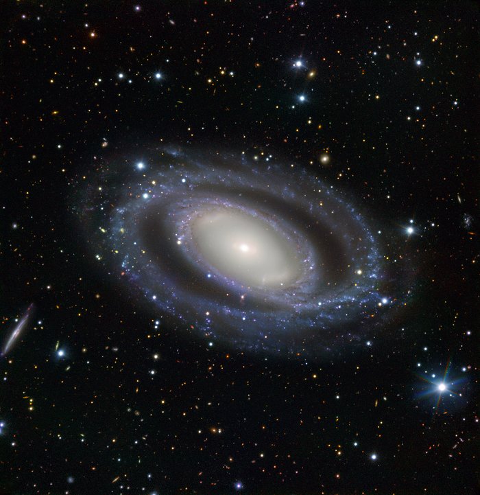 Quest’immagine è formata da osservazioni raccolte dallo strumento FORS (FOcal Reducer and low dispersion Spectrograph), installato sul Very Large Telescope di ESO all’osservatorio di Paranal. Una varietà di galassie lontane sono anche visibili su quest’immagine, la più prominente è la piccola galassia spirale vista di profilo a sinistra di NGC 7098, conosciuta come PGC 246235.