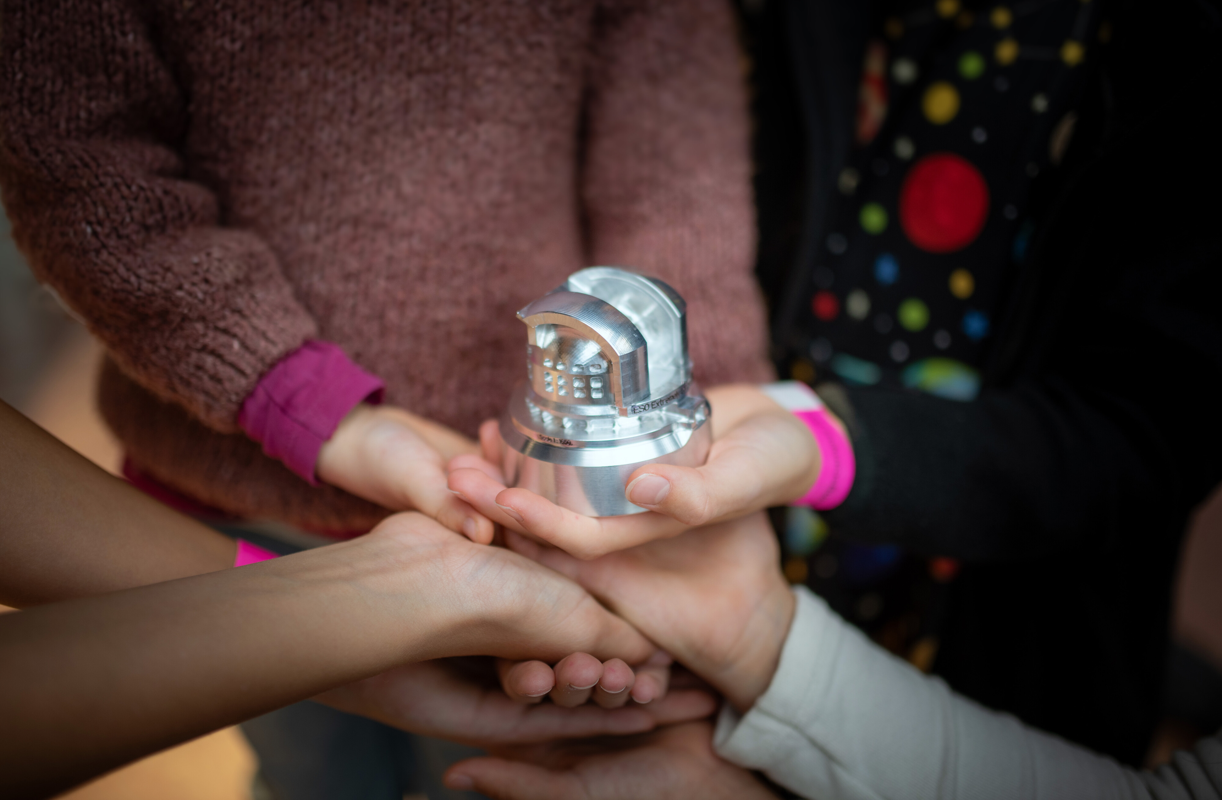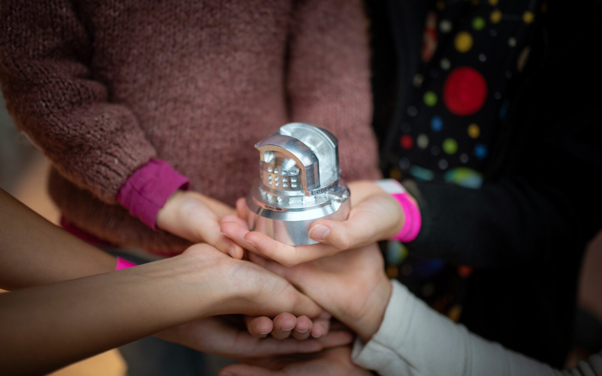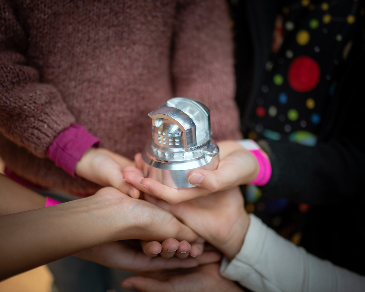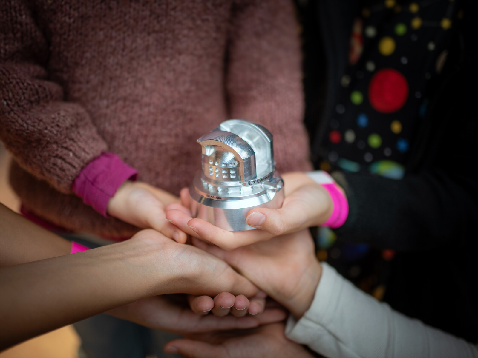 During the Open House Day on 3 October 2024 visitors could visit behind the scenes of the European Southern Observatory (ESO) Headquarters in Garching, Germany. In the Mechanical Workshop, live machining was done, to show how precision parts are made from raw materials. This mini model of the Extremely Large Telescope (ELT) was made using a 5-axis milling machine. It cuts out a mini ELT on a scale of 1:1650 from a piece of aluminum alloy using different shaped milling tools. It takes 1hour 15min to make this model.