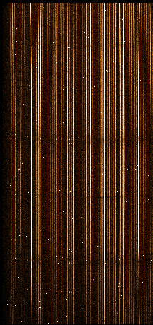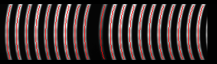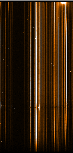 Incomplete last fibre (right); the extracted fibre signal is marked red. This is an extracted view of a raw file, highly compressed in vertical direction in order to emphasize the fibre signal curvature.