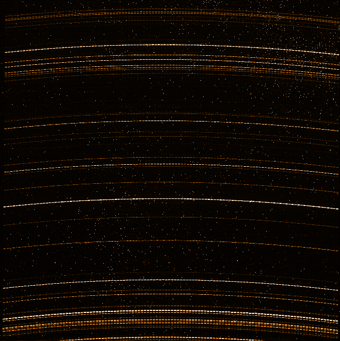 Arc-lamp exposure. Example frame in the H band. Each IFU slitlet corresponds to one vertical stripe with a width of 14 pixels on the detector. 14 slitlets form one IFU.