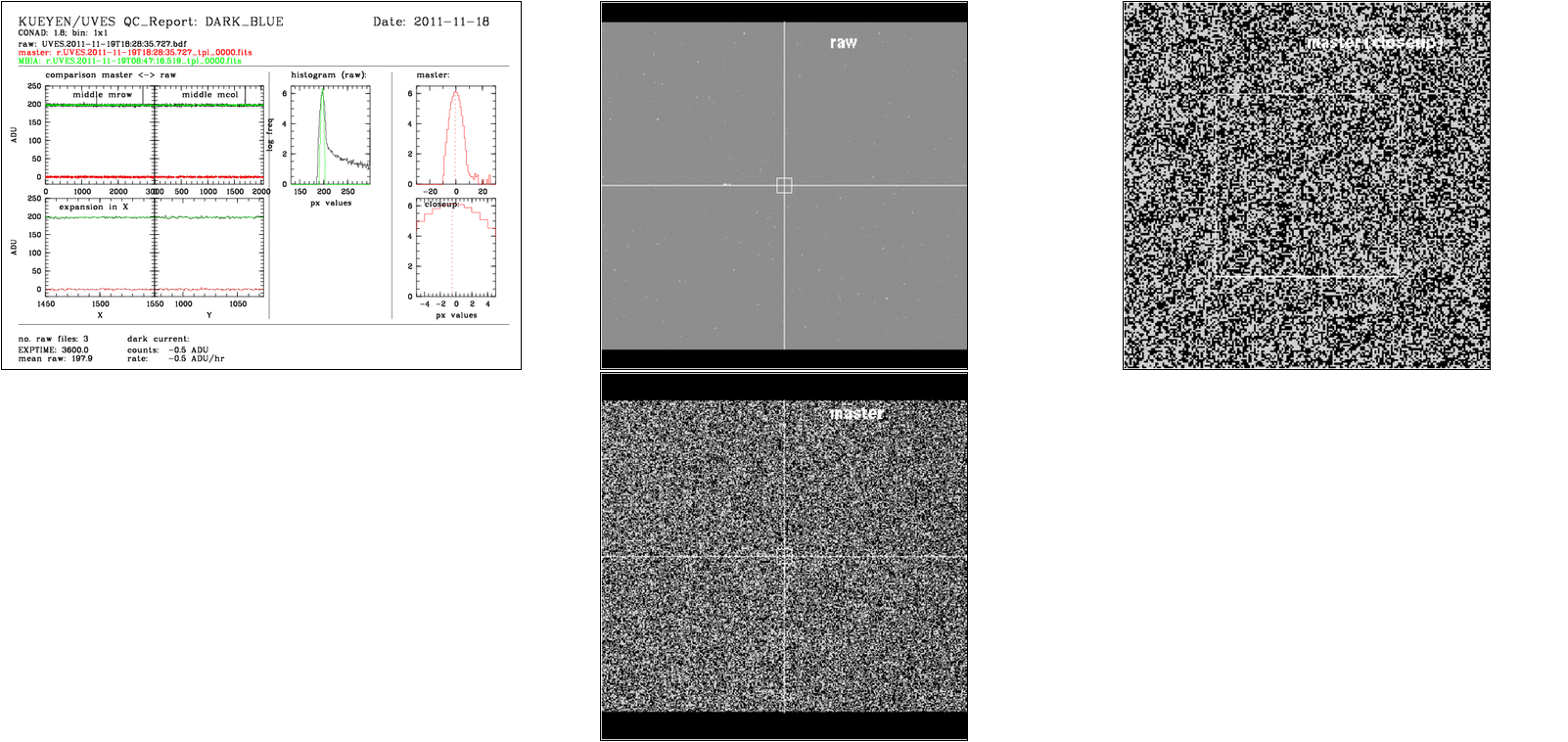 top panel: name of analyzed master DARK frame and name of the master BIAS frame used for comparison (and by the pipeline)