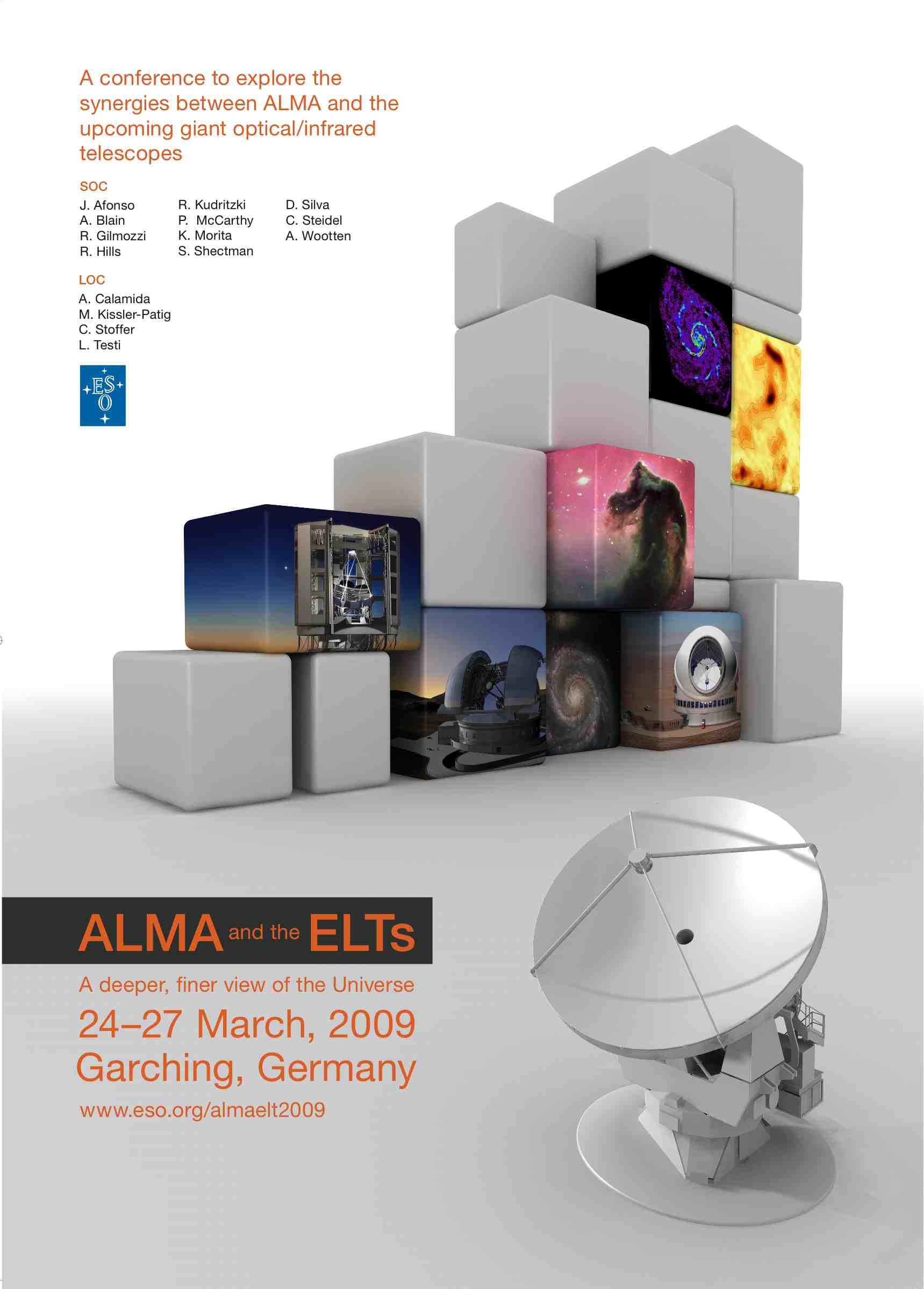 The ESO workshop ALMA and ELTs: A Deeper, Finer View of the Universe explored the scientific synergies between ALMA and ELTs (24-27 Mar 2009).