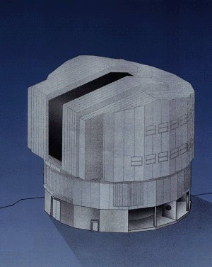 The enclosure is designed as a building of cylindrical shape, constructed as a steel structure with both roof and facades covered with weather-tight and thermally insulating cladding panels.In the adjacent 3-dim picture the dome is displayed. Also look at theVLT sectional drawings, front view andside view.Each enclosure consists of:
