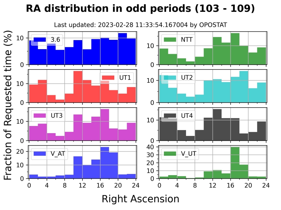 Based on the time request for all the ESO telescopes in the last four semesters, one can make an educated guess of the RA demand expected during the current period. Proposers should take advantage of this information in choosing targets to maximize the probability of the allocation of time and successful execution of their runs.