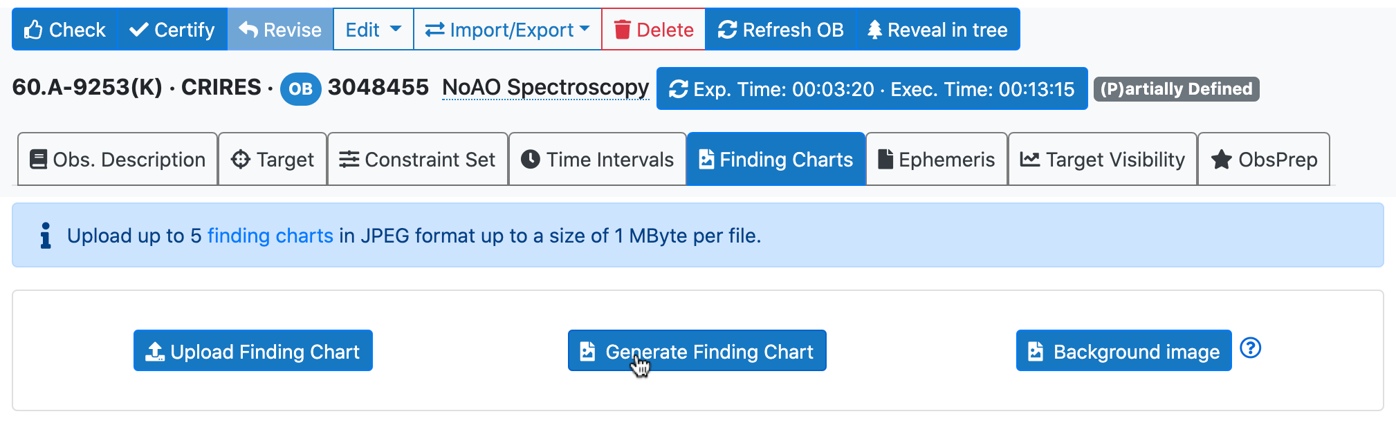 Alternatively, you can provide your own-made finding charts (please consult this page to check all the requirements), which you must manually attach to the OB (i.e., click on the "Upload Finding Chart" button you find in the Finding Charts section).