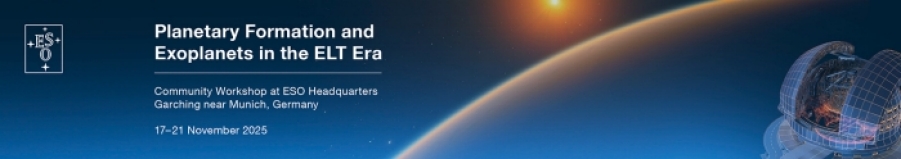Registration and abstract submission for the ESO workshop "Planetary Formation and Exoplanets in the ELT era”, to be held at ESO Garching, 17-21 November 2025, is now open. The workshop will discuss the understanding of how giant and rocky planets form and evolve, their internal structure and that of their atmosphere, in the context of the Extremely Large Telescope (ELT).