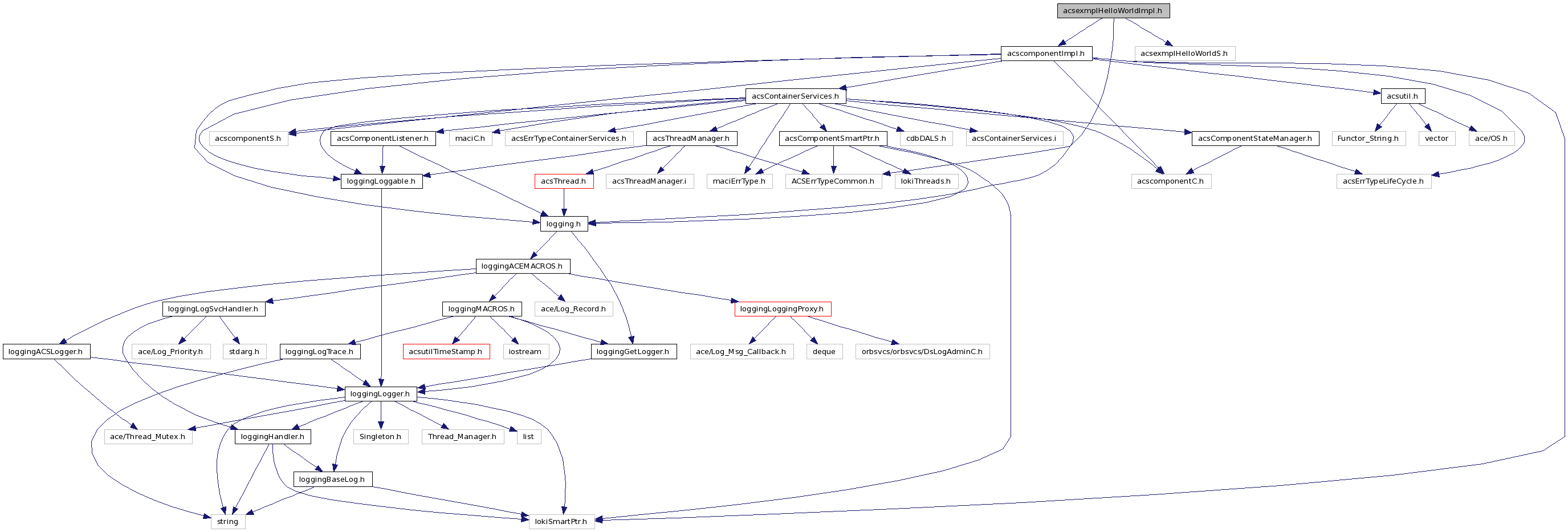 This example is unique because it is derived from CharacteristicComponent's superclass, ACSComponent. This is the CORBA stub client header for ACSErrTypeCommon.idl where the definition of the CORBA exception is found. The empty CORBA servant interface, POA_acsexmplHelloWorld::HelloWorld, is obtained from this header file and is automatically generated from HelloWorld's Interface Definition File (i.e., acsexmplHelloWorld.idl) by CORBA.