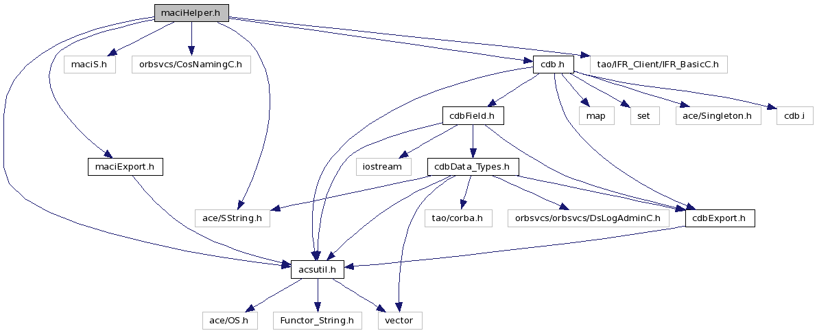 #include <acsutil.h>#include <maciExport.h>#include <maciS.h>#include <orbsvcs/CosNamingC.h>#include <ace/SString.h>#include <cdb.h>#include <tao/IFR_Client/IFR_BasicC.h>