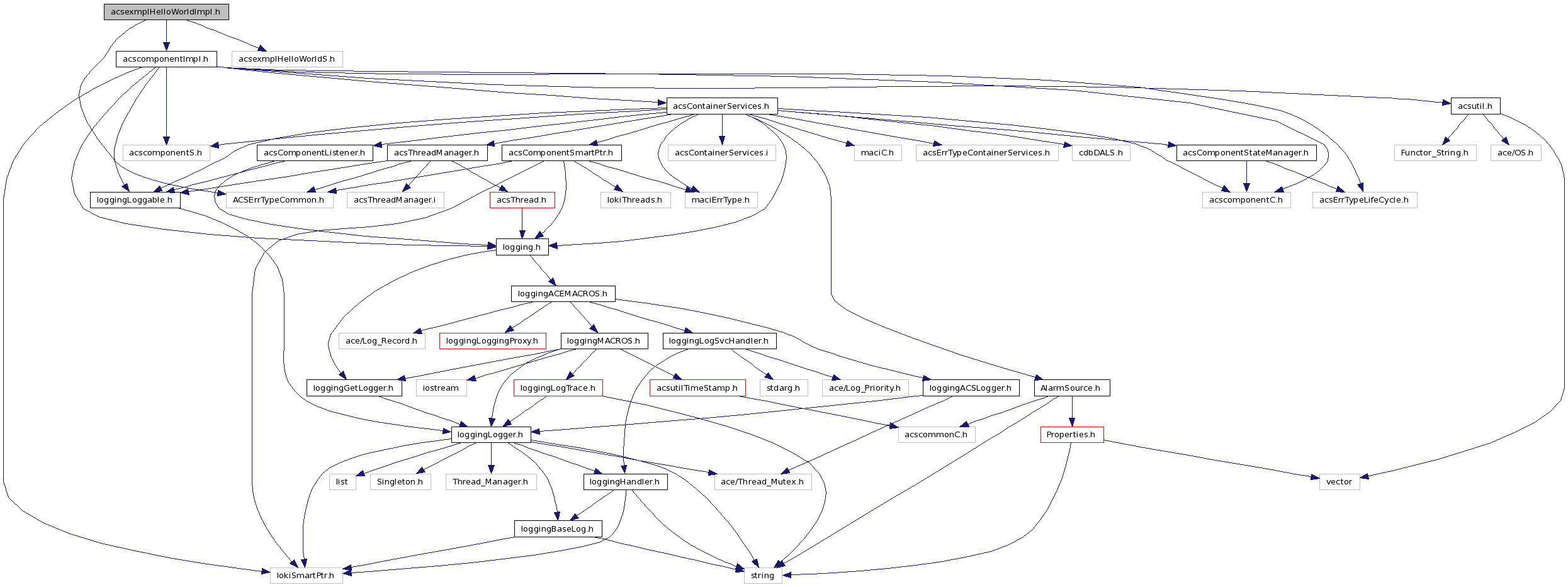 This example is unique because it is derived from CharacteristicComponent's superclass, ACSComponent. This is the CORBA stub client header for ACSErrTypeCommon.idl where the definition of the CORBA exception is found. The empty CORBA servant interface, POA_acsexmplHelloWorld::HelloWorld, is obtained from this header file and is automatically generated from HelloWorld's Interface Definition File (i.e., acsexmplHelloWorld.idl) by CORBA.