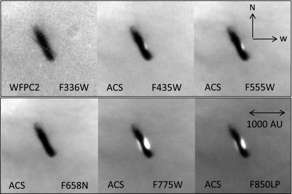 Deep HST broadband images of the giant (~1000 AU diameter) dark silhouette proplyd 114-426 in the Orion Nebula show that this system is tilted, asymmetric, warped, and photoevaporated. We are also able to map the distribution of dust grains at the northern translucent edge of the disk, dominated by the photoevaporative flow.
