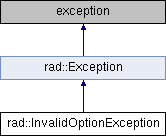 | InvalidOptionException (const InvalidOptionException &)=default | |