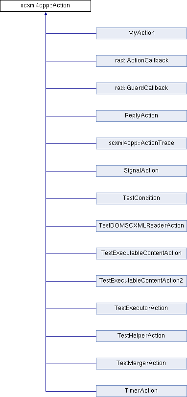 Implemented in rad::GuardCallback, TestDOMSCXMLReaderAction, TestCondition, TestCondition, TestMergerAction, TestHelperAction, TestExecutorAction, TestExecutableContentAction2, TestExecutableContentAction, MyAction, TimerAction, ReplyAction, ReplyAction, SignalAction, MyAction, rad::ActionCallback, and scxml4cpp::ActionTrace.
