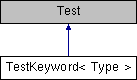 Inheritance diagram for TestKeyword< Type >:Note that test cases must use TypeParam and cannot declare templated aliases.