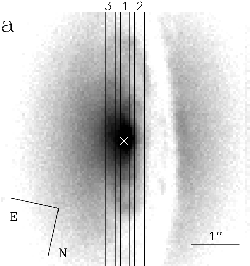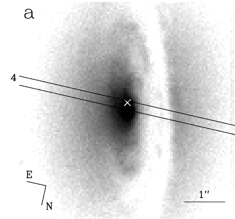 ![]() Observed [NII] kinematics (filled circles) along with the best-fitting model (solid line) and