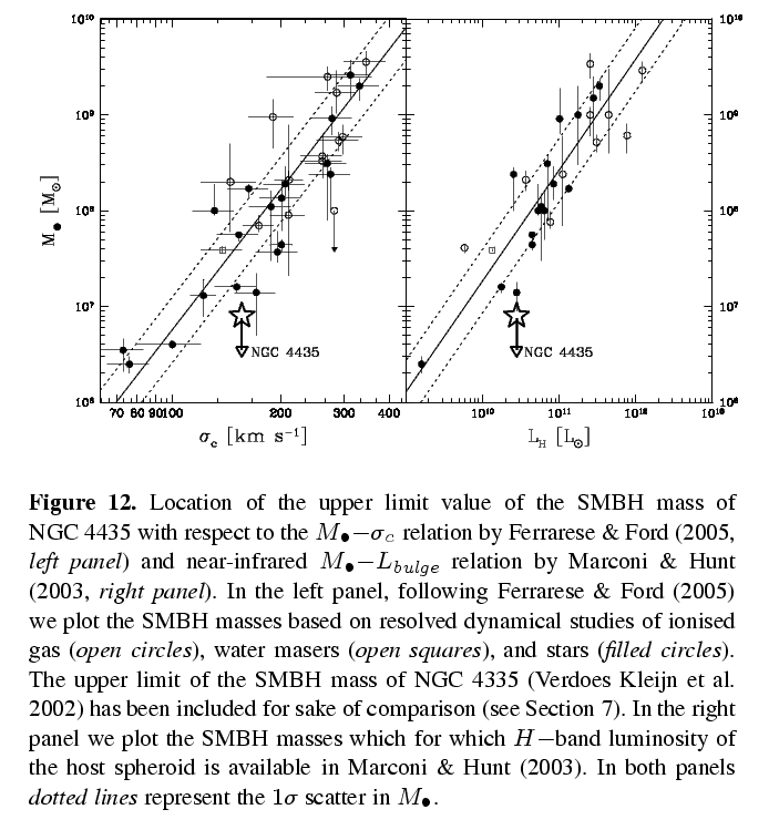Coccato, L., Sarzi, M., Pizzella, A., Corsini, E. M., Dalla Bonta', E., & Bertola, F. 2006, MNRAS 366, 1050. NGC 4435: a bulge dominated galaxy with an unforeseen low mass central black hole. MNRAS paper