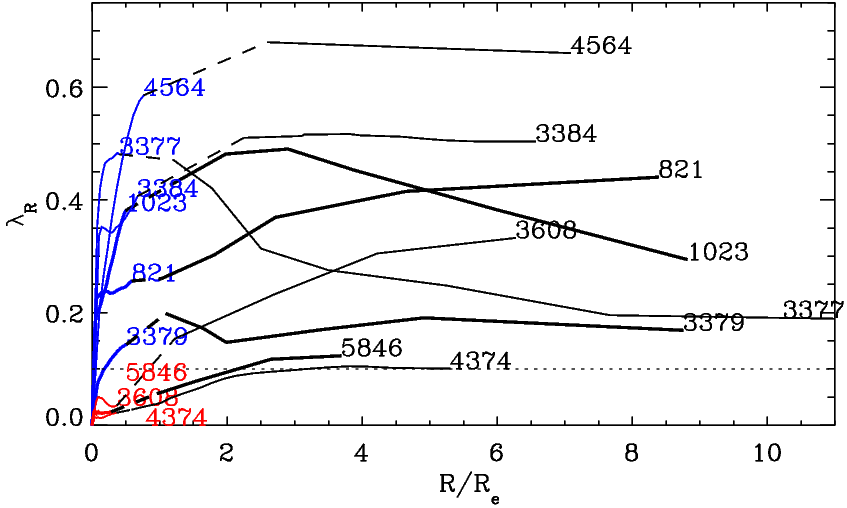 and represent slow rotators (galaxies with λ(R) < 0.1) and